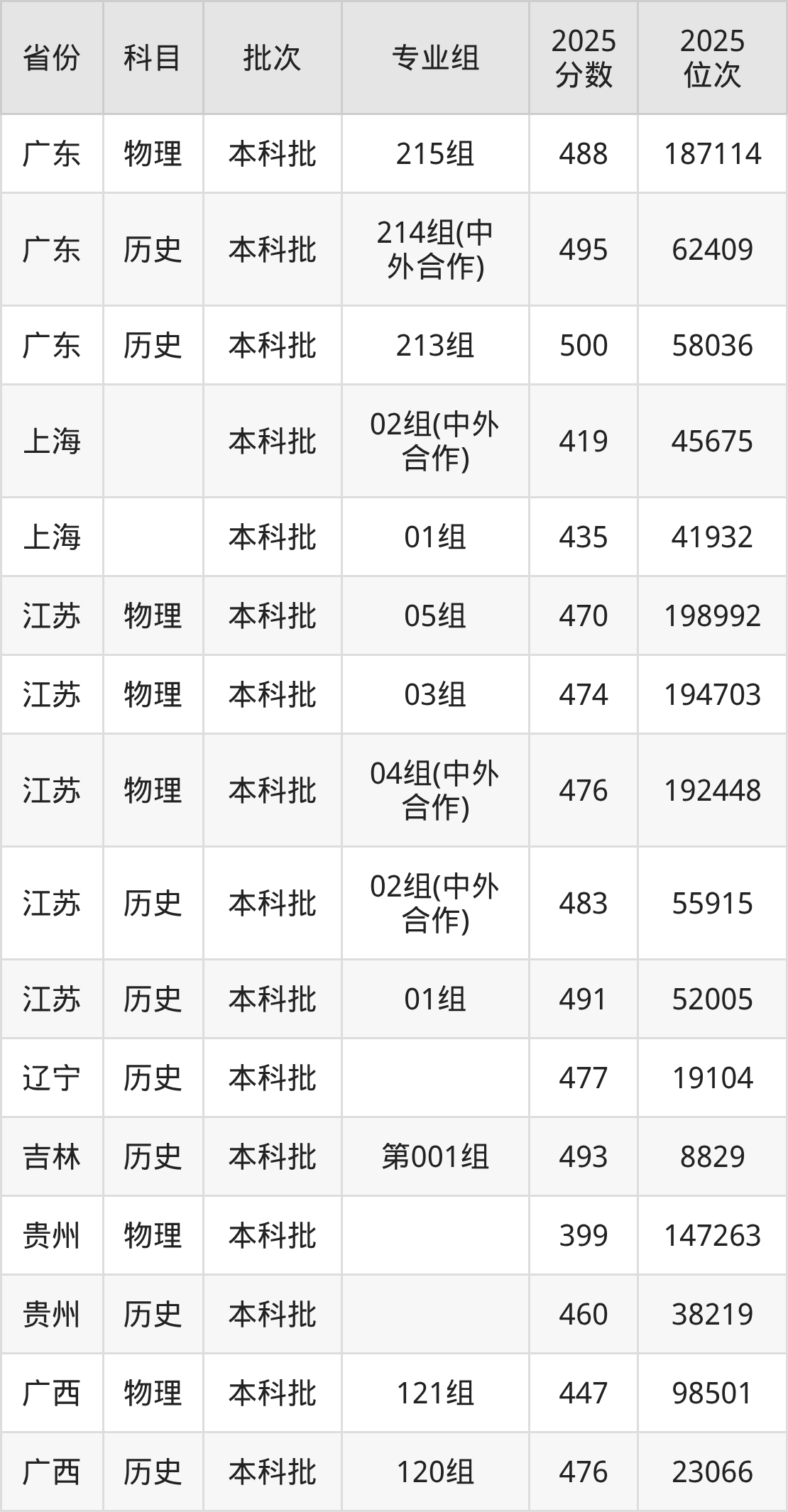 南京传媒学院121组:2025年投档录取最低分为447分,录取最低位次为98501名。