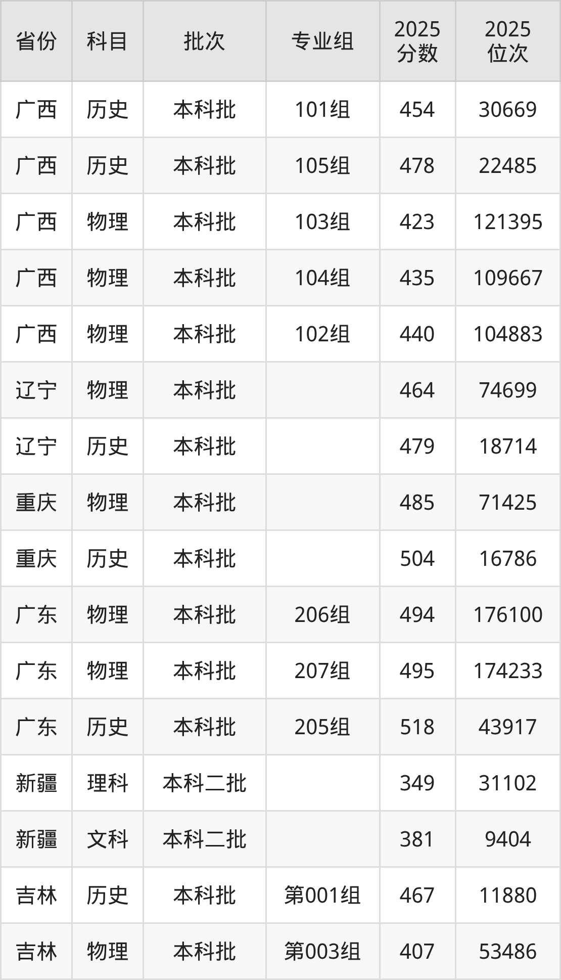 普通类本科物理类最低407分,本科历史类最低467分