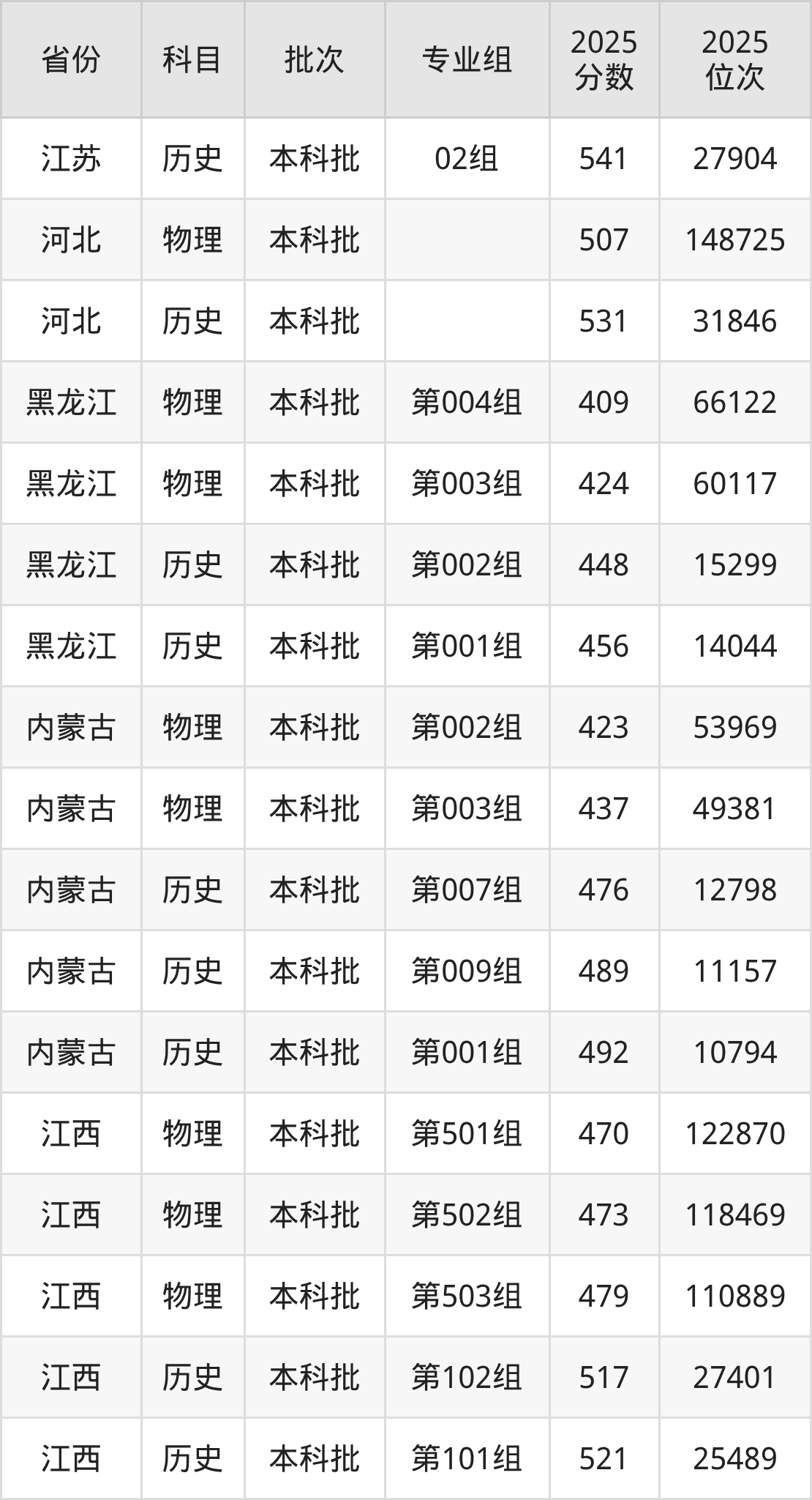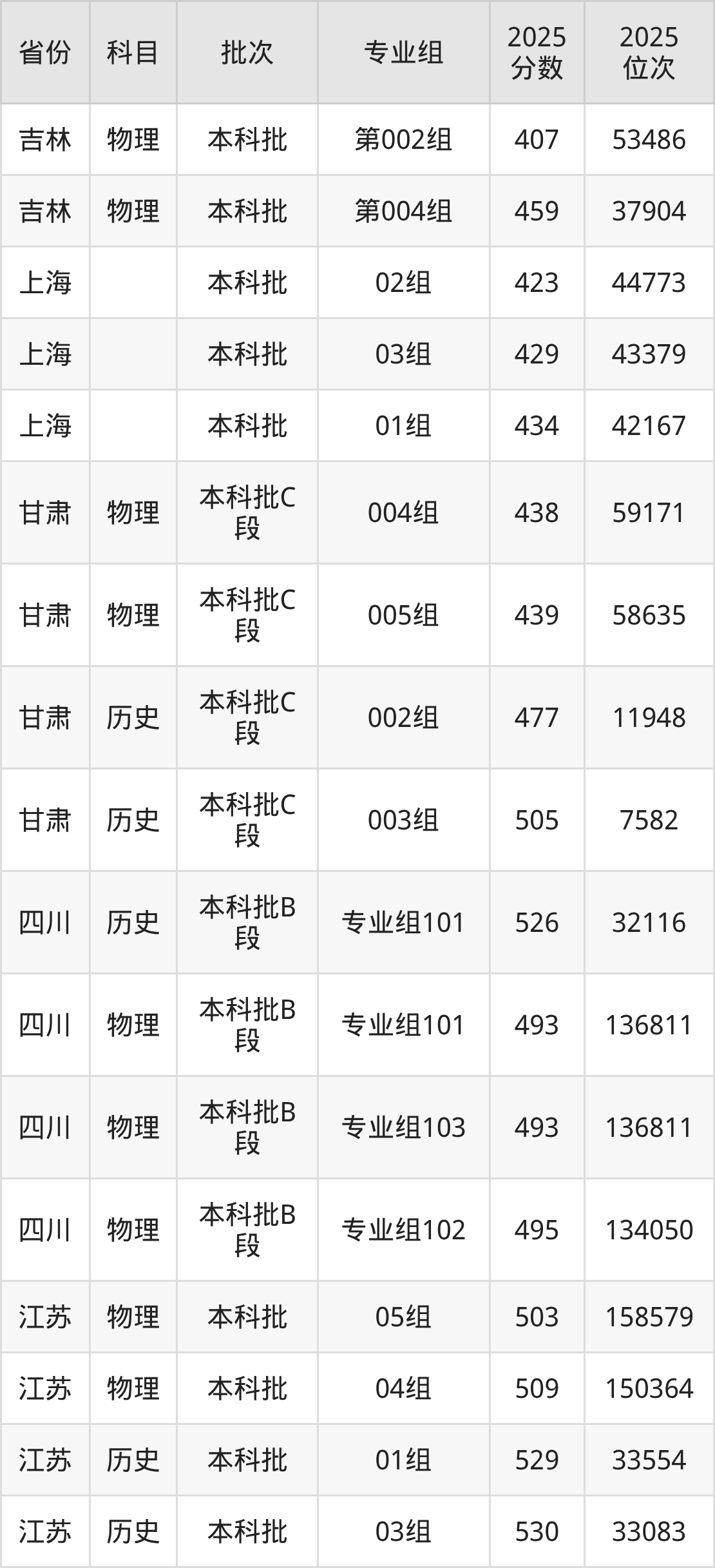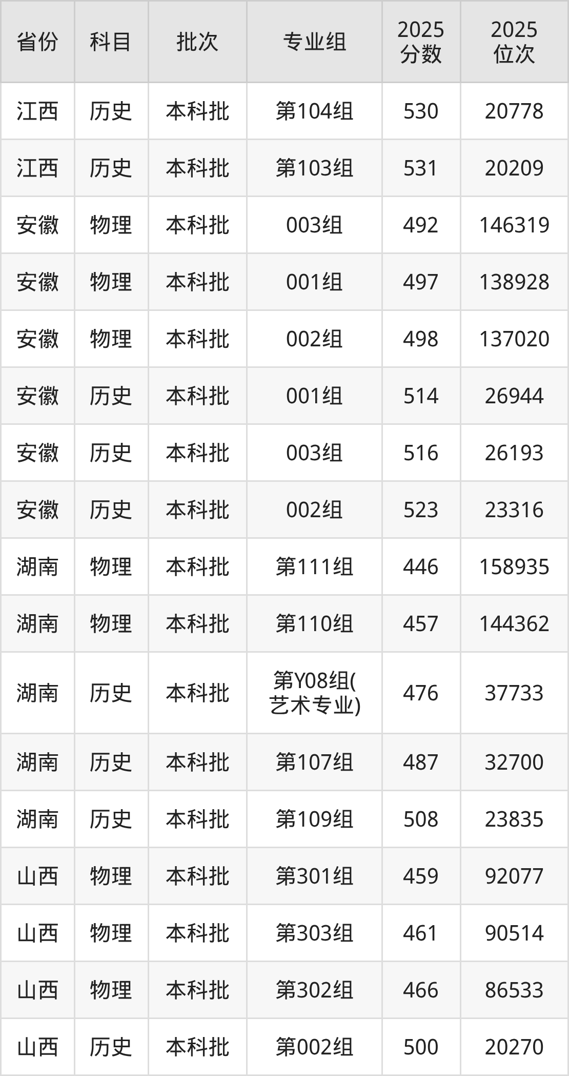 普通类本科物理类最低493分,本科历史类最低526分