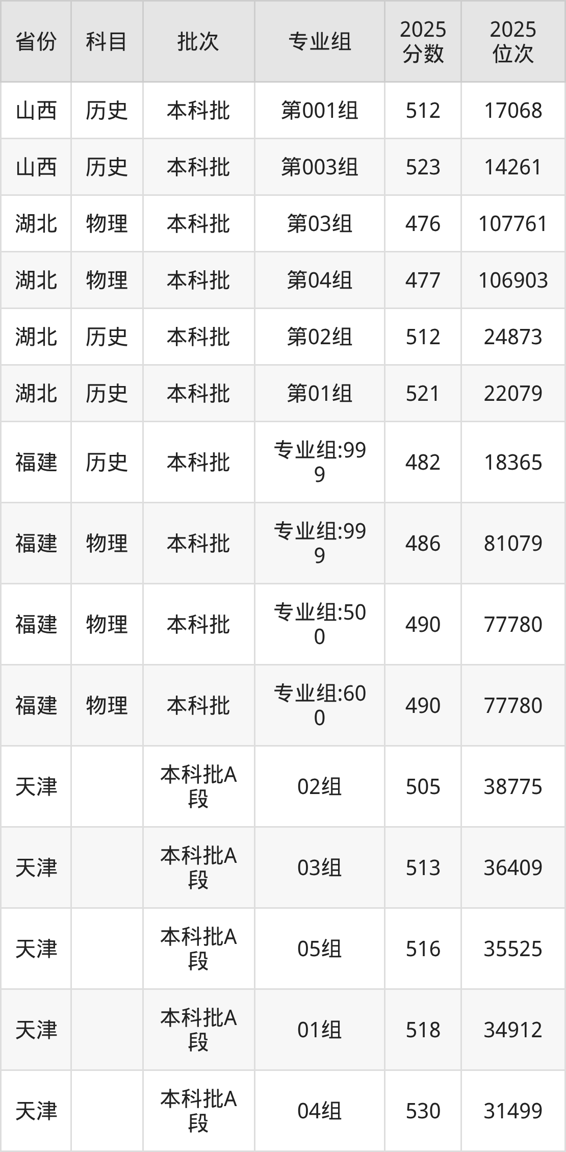普通类本科物理类最低503分,本科历史类最低529分