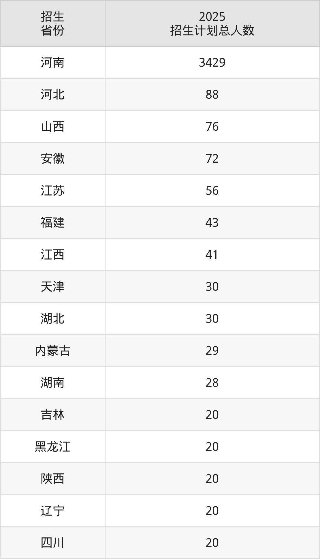 2025年商丘师范学院面向全国23个省市开展本科招生;招生专业共49个,招生人数共4111人。2025年在河南省招生计划总人数是3429人,其中,商丘师范学院在河南省招生人数最多的是汉语言文学。商丘师范学院在各省具体招生人数情况如下表。