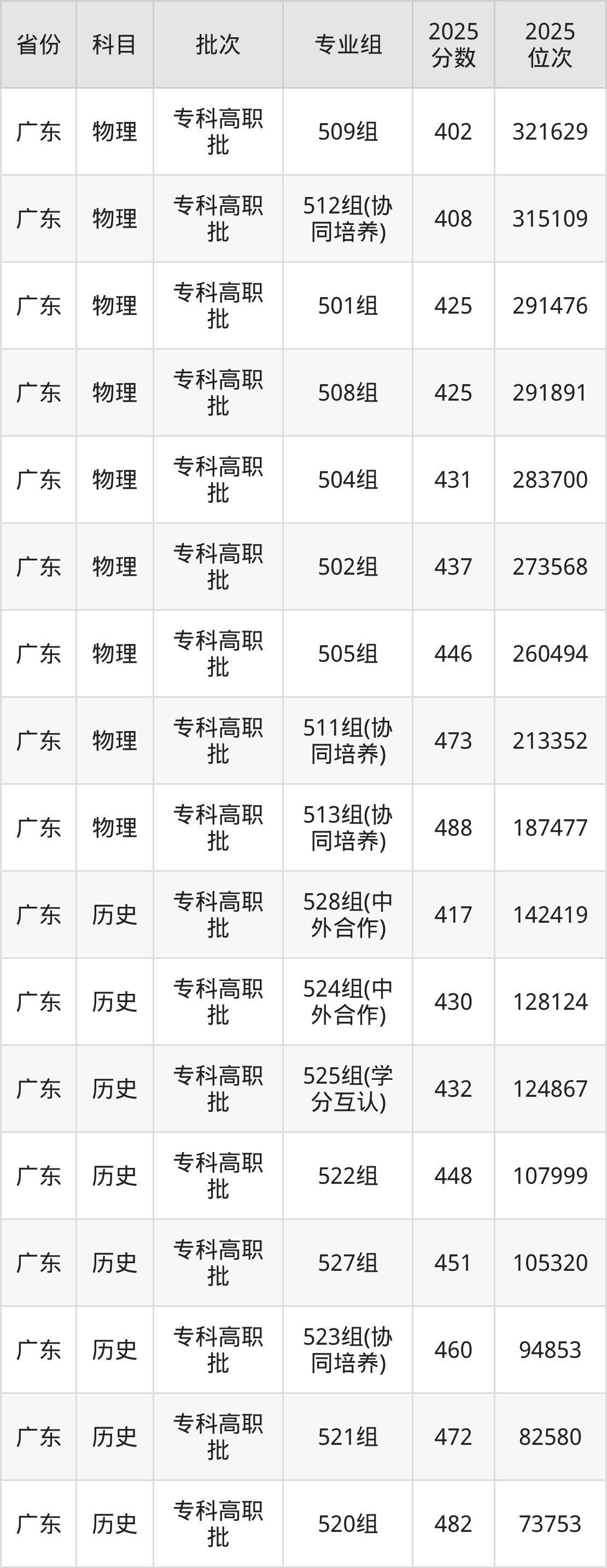 广东水利电力职业技术学院506组:2025年投档录取最低分为379分,录取最低位次为347811名。