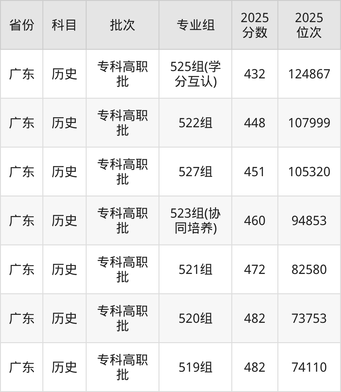 广东水利电力职业技术学院525组(学分互认):2025年投档录取最低分为432分,录取最低位次为124867名。
