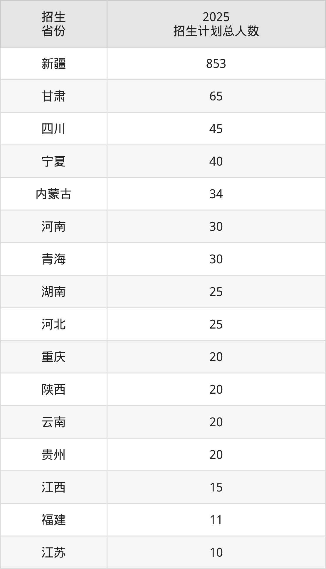 2025年吐鲁番职业技术学院面向全国18个省市开展专科招生;招生专业共28个,招生人数共1278人。2025年在新疆维吾尔自治区招生计划总人数是853人,其中,吐鲁番职业技术学院在新疆维吾尔自治区招生人数最多的是应用化工技术。吐鲁番职业技术学院在各省具体招生人数情况如下表。