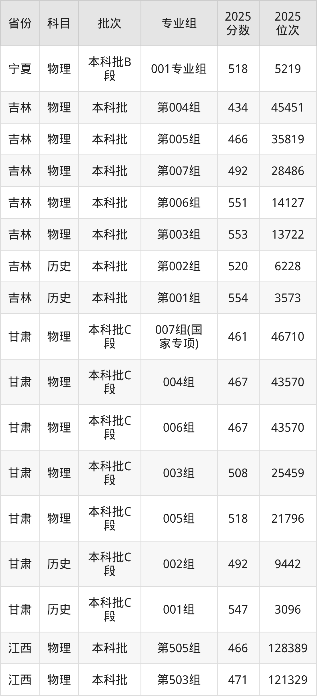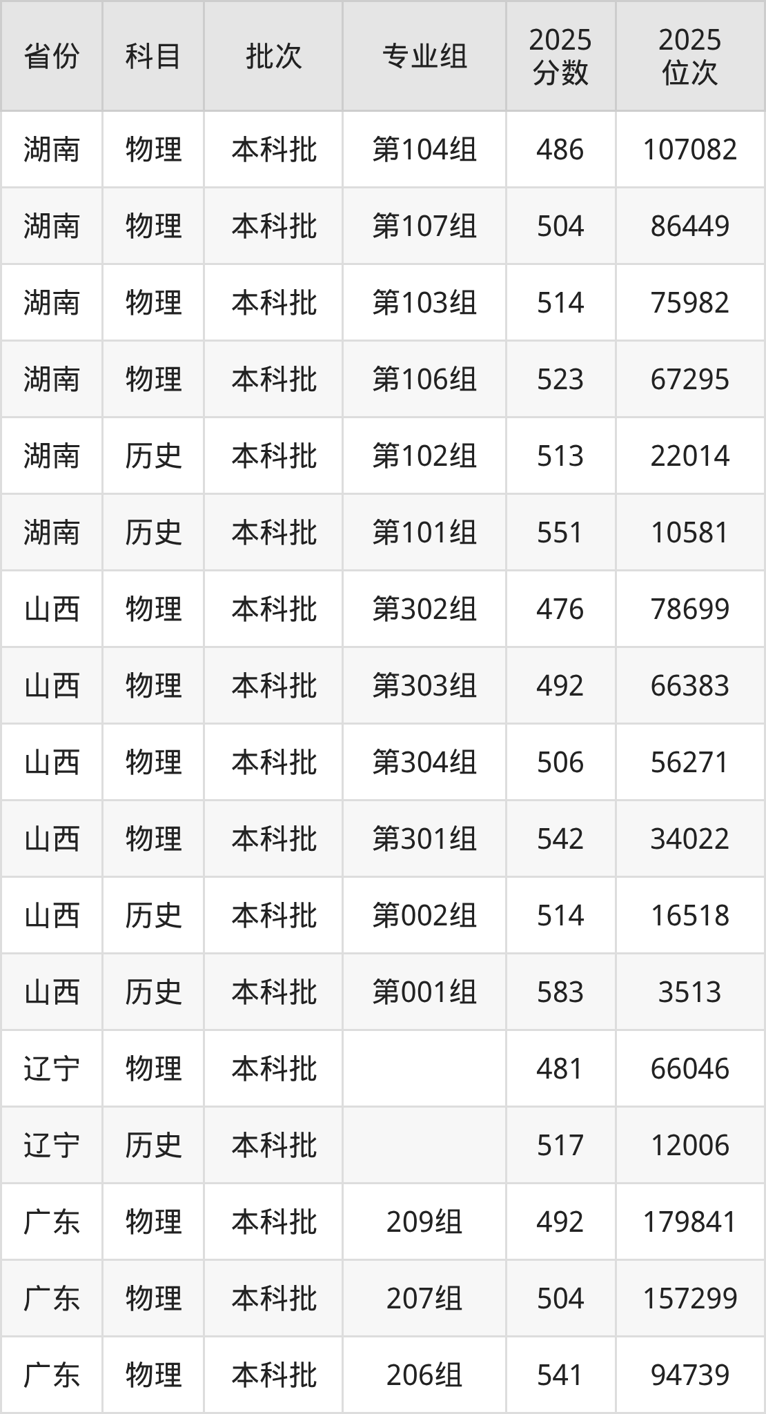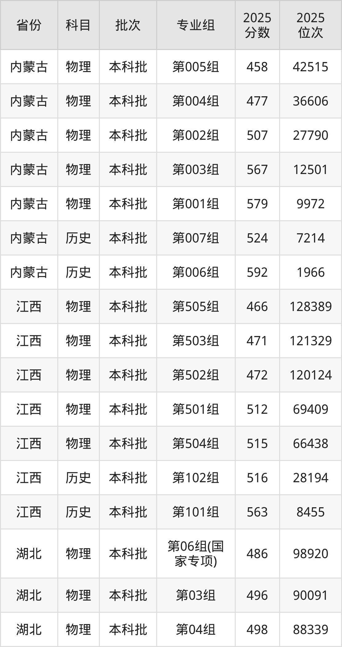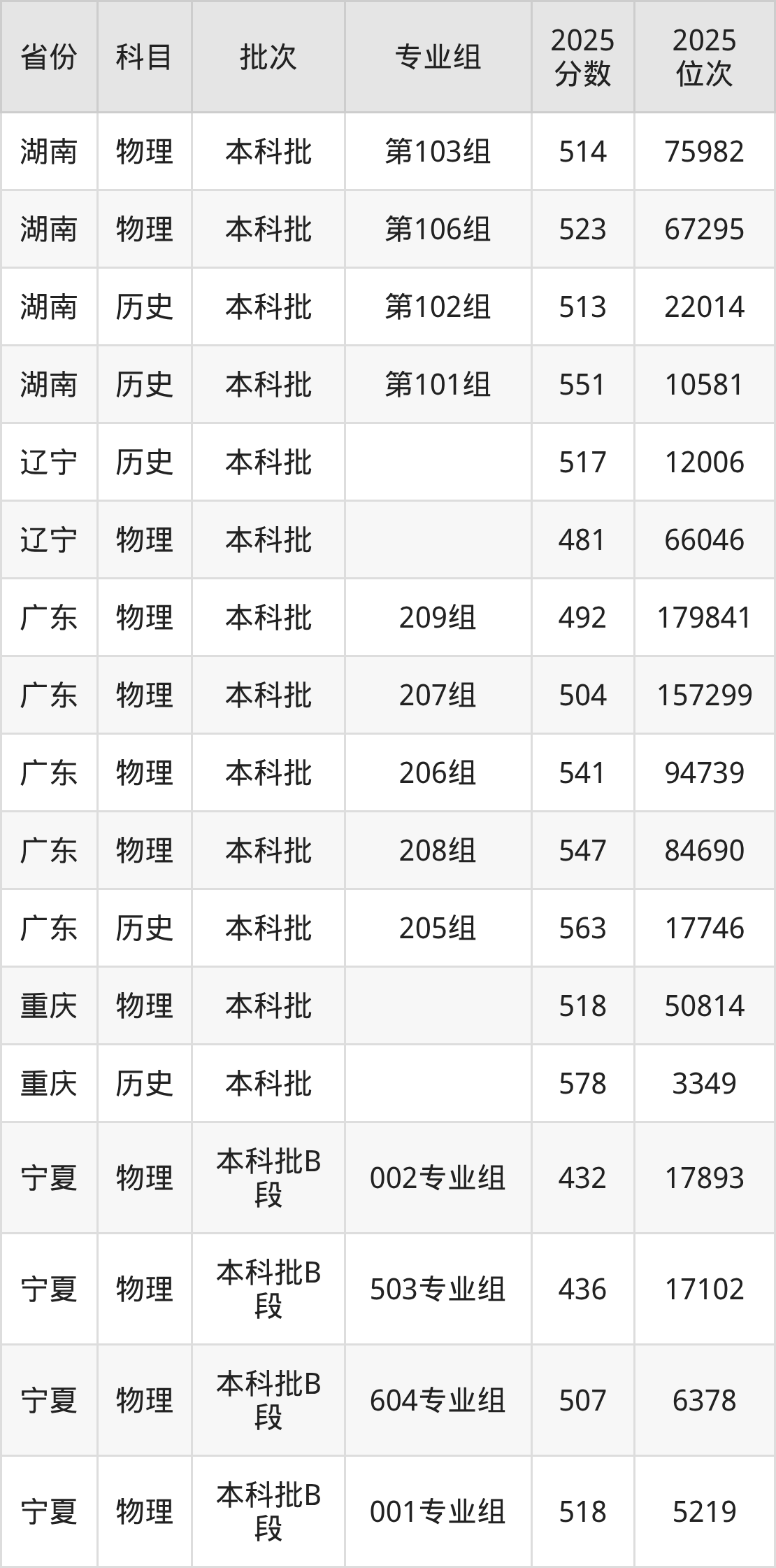 2025年在本科物理类进行招生,各专业组分数线详情如下: