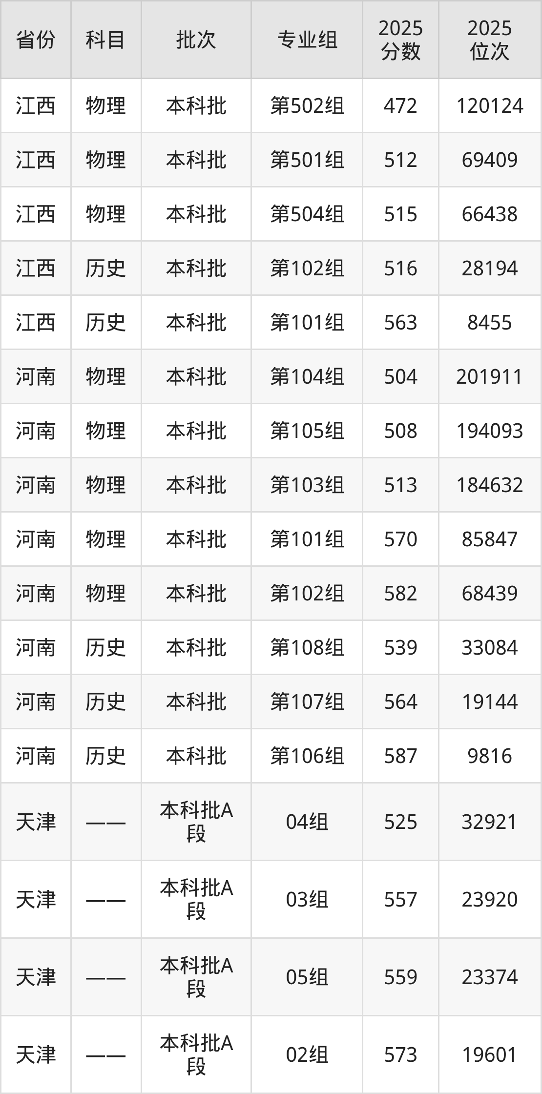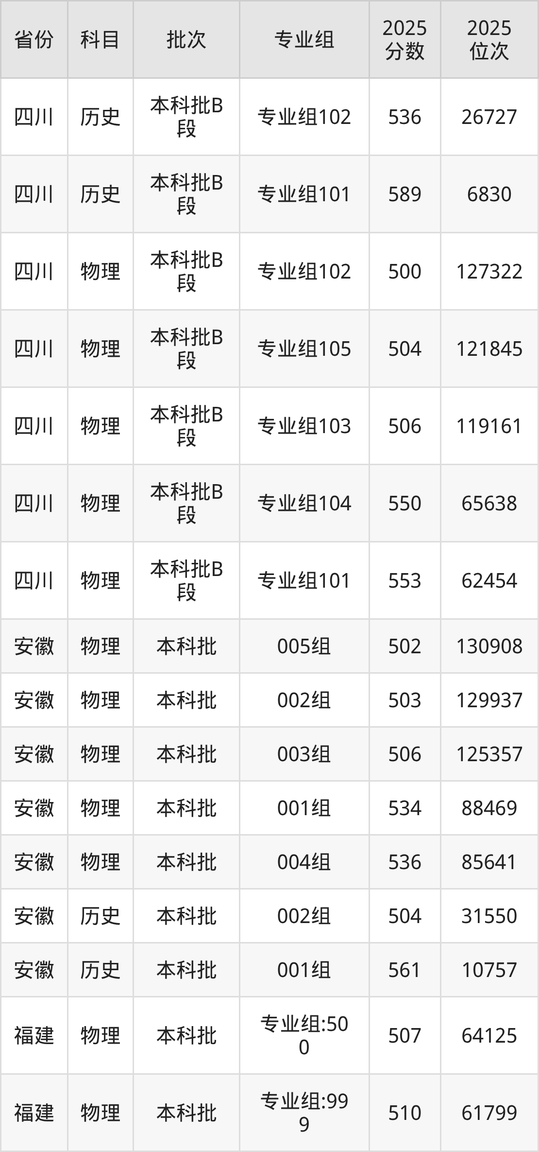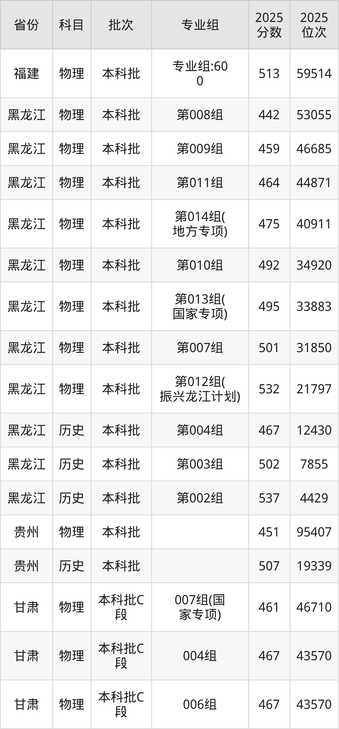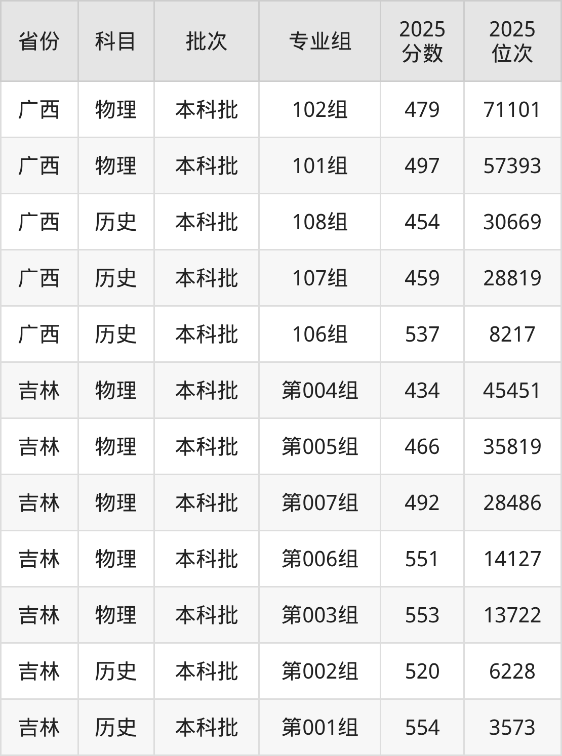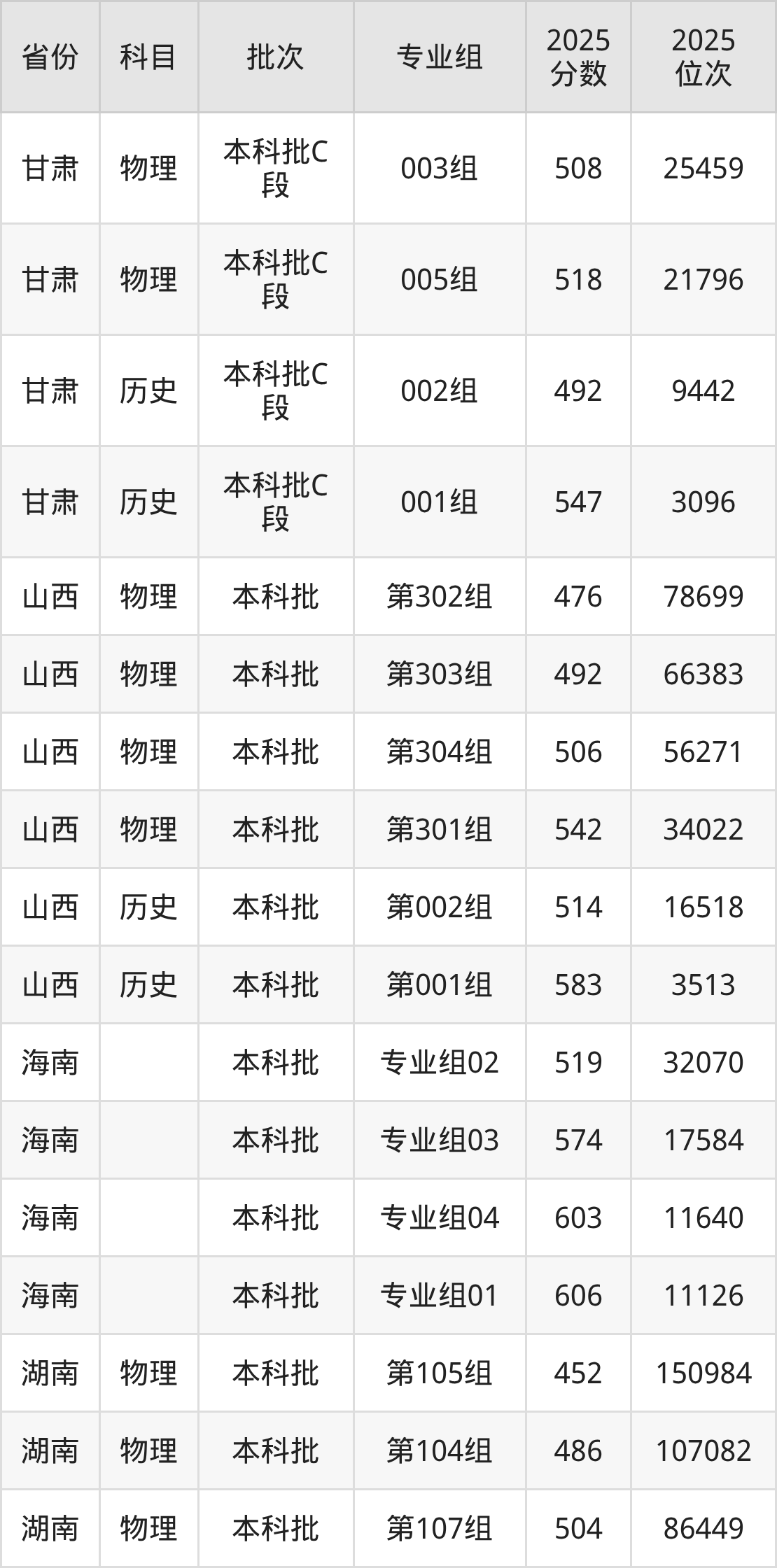 2025年在本科物理类进行招生,各专业组分数线详情如下: