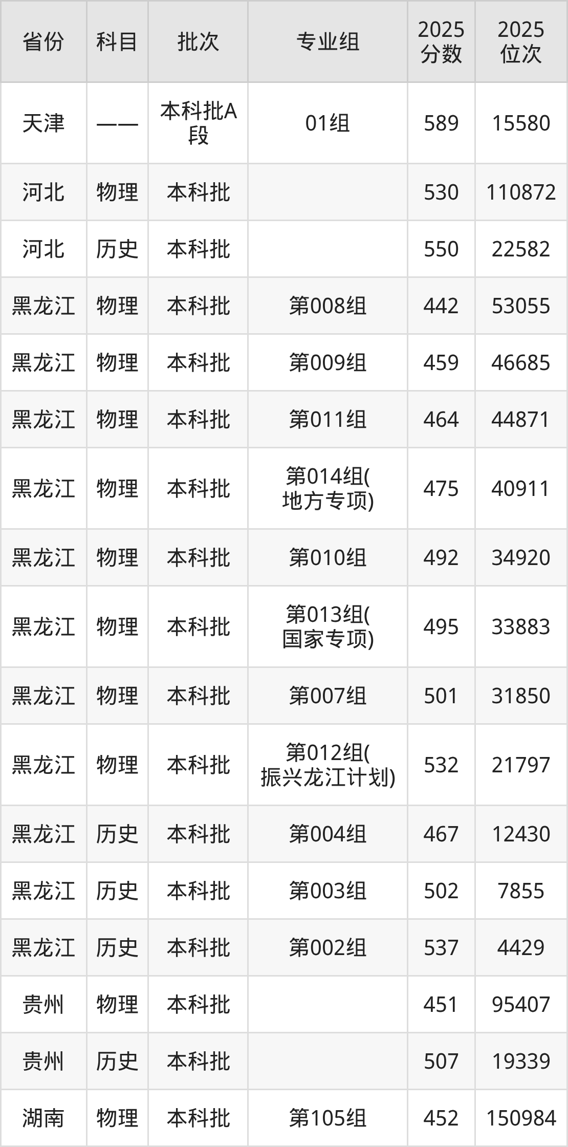 黑龙江中医药大学第06组(国家专项计划):2025年投档录取最低分为486分,录取最低位次为98920名。