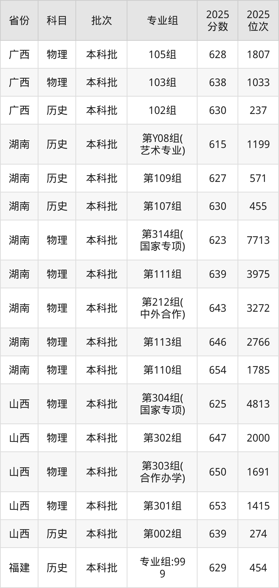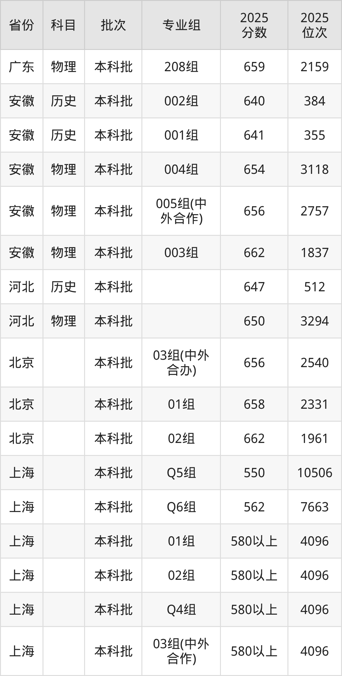 同济大学05组:2025年投档录取最低分为653分,录取最低位次为3556名。