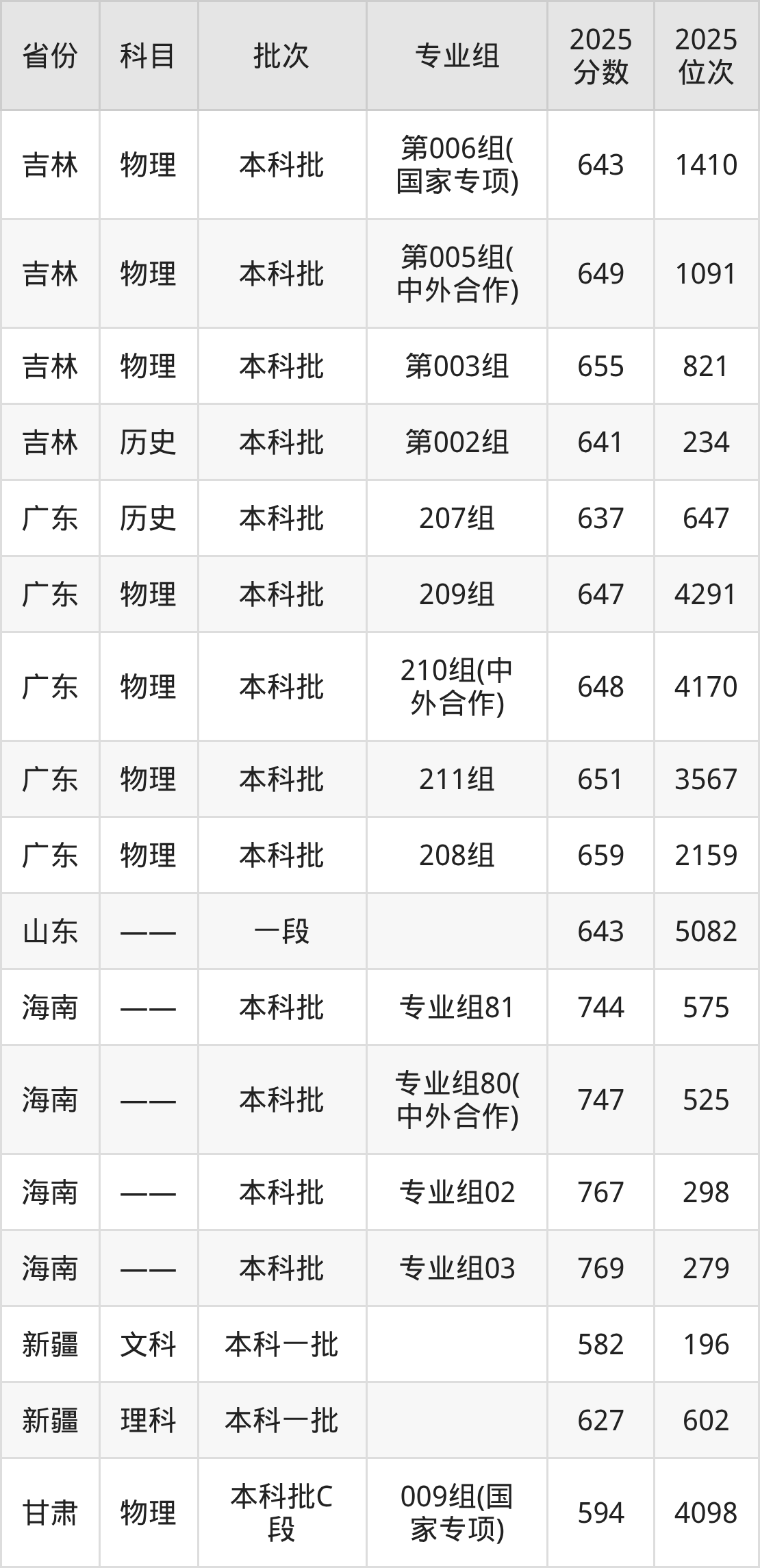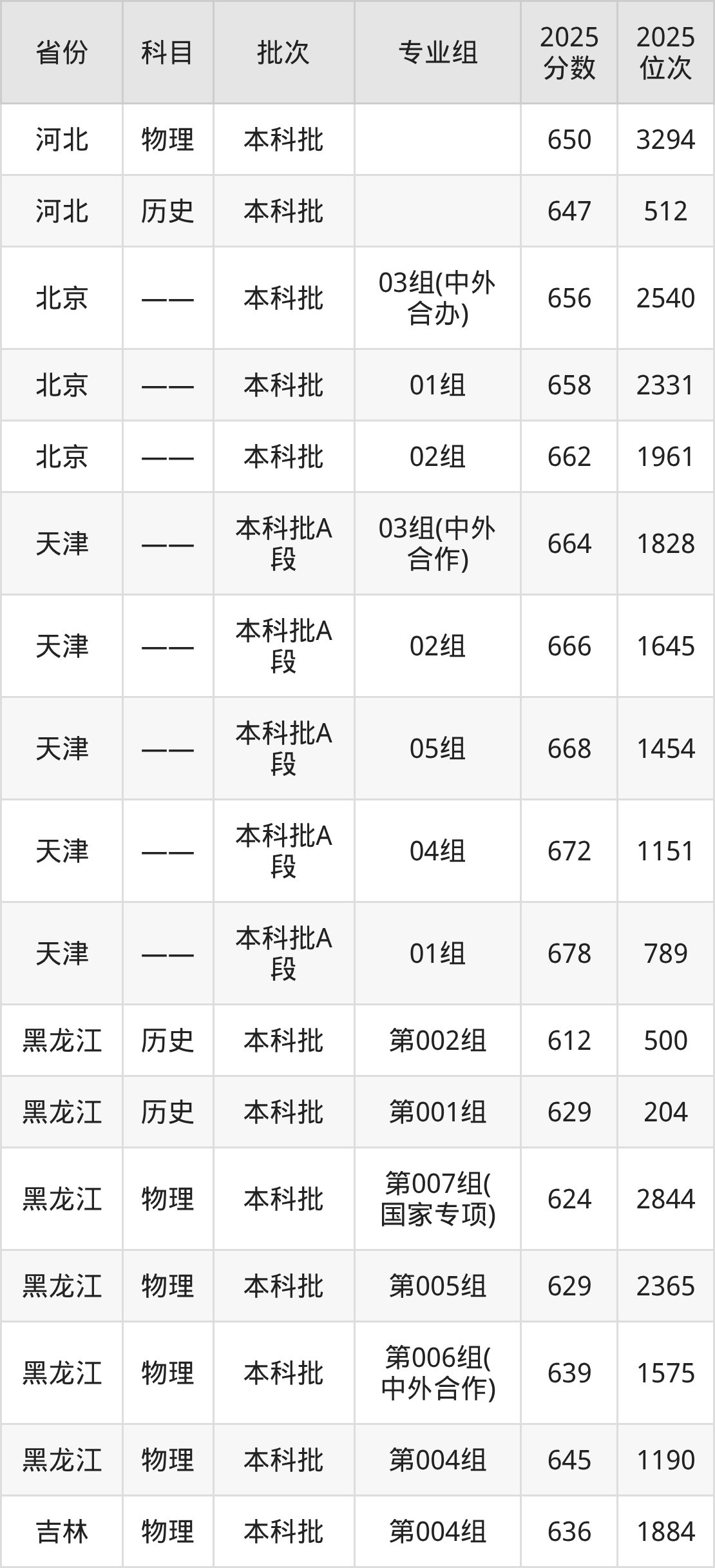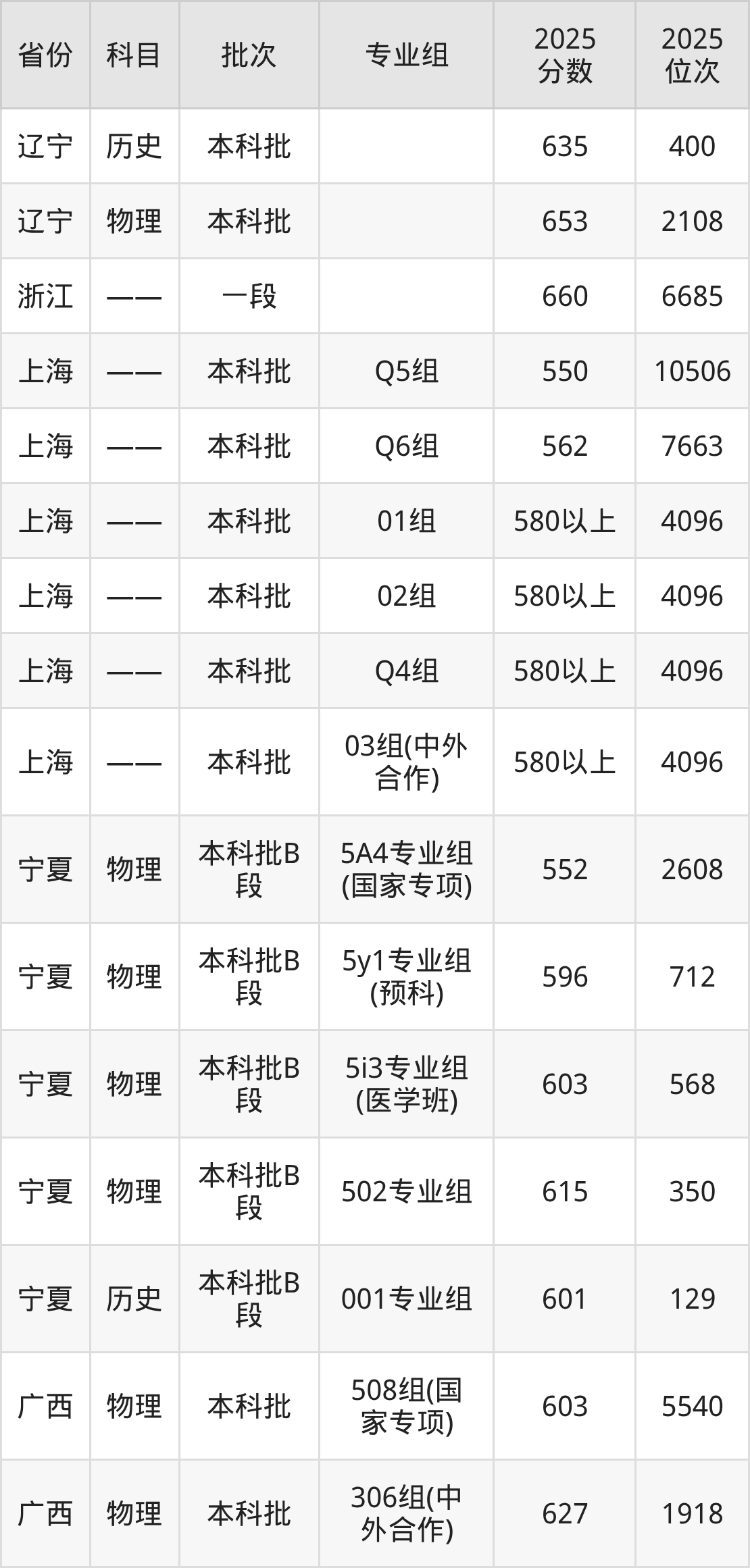 下面是2025年同济大学全国录取分数线一览表,请查阅。