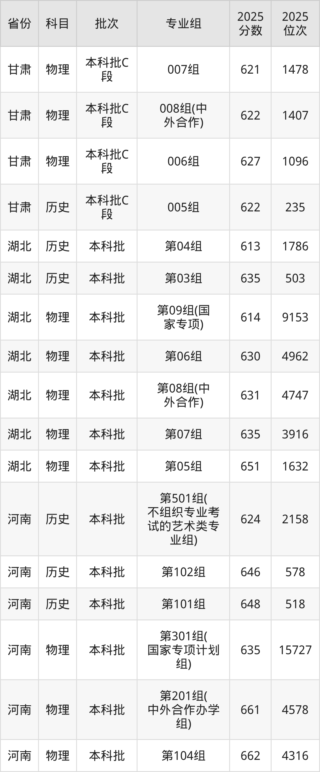 同济大学005组(中外合作办学):2025年投档录取最低分为656分,录取最低位次为2757名。