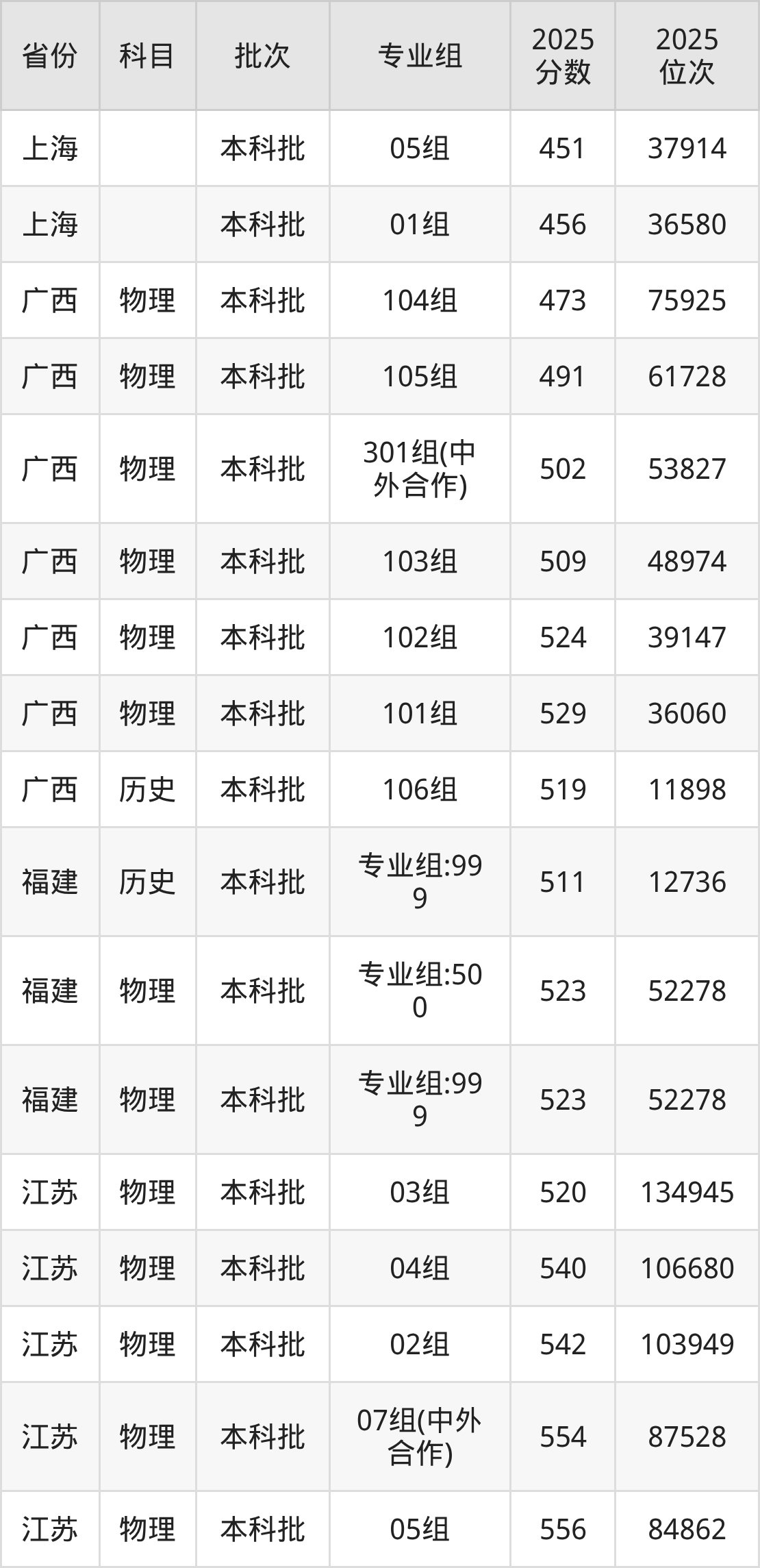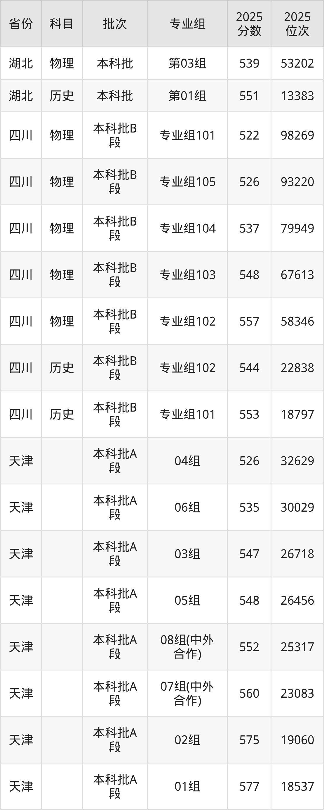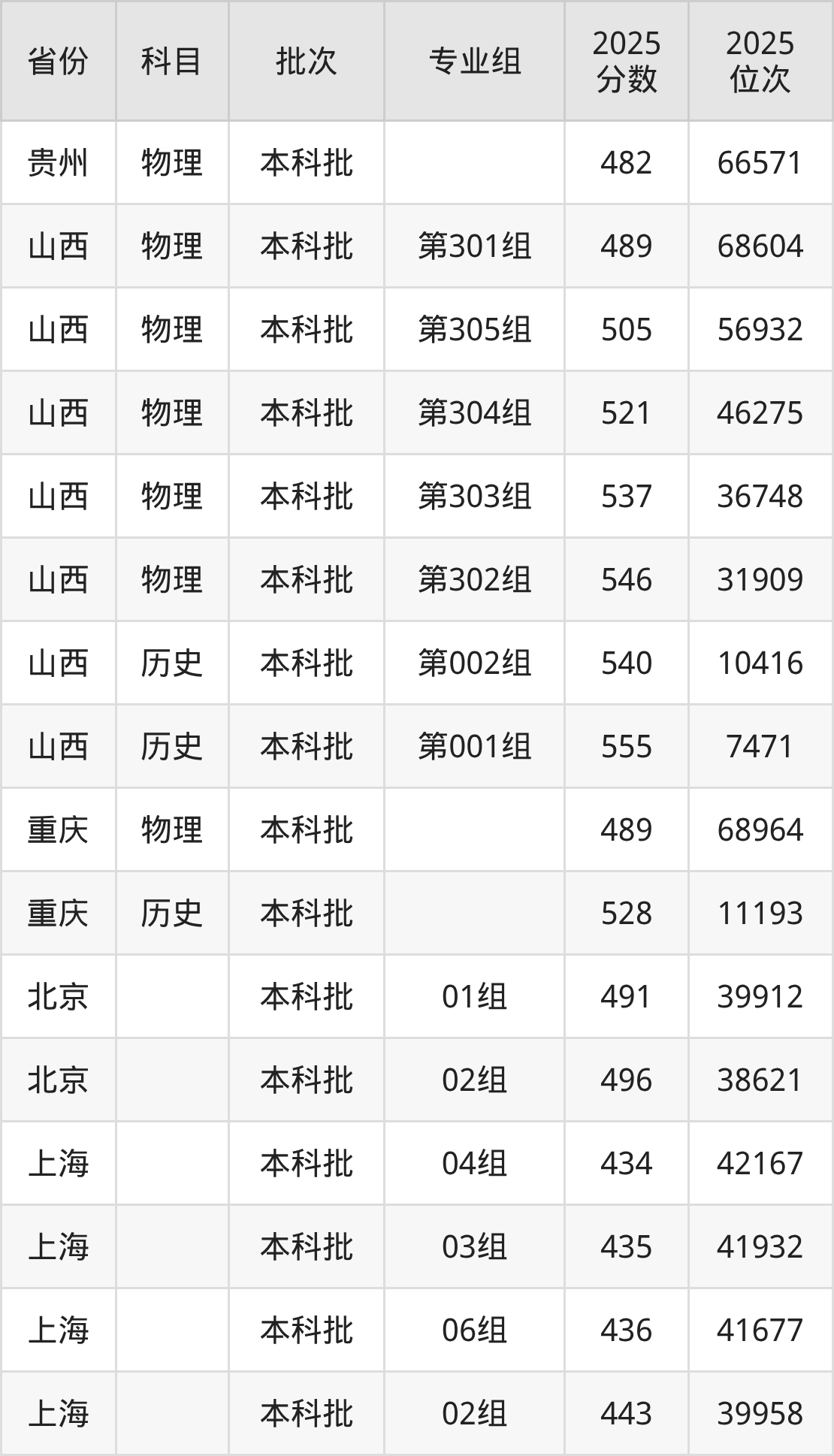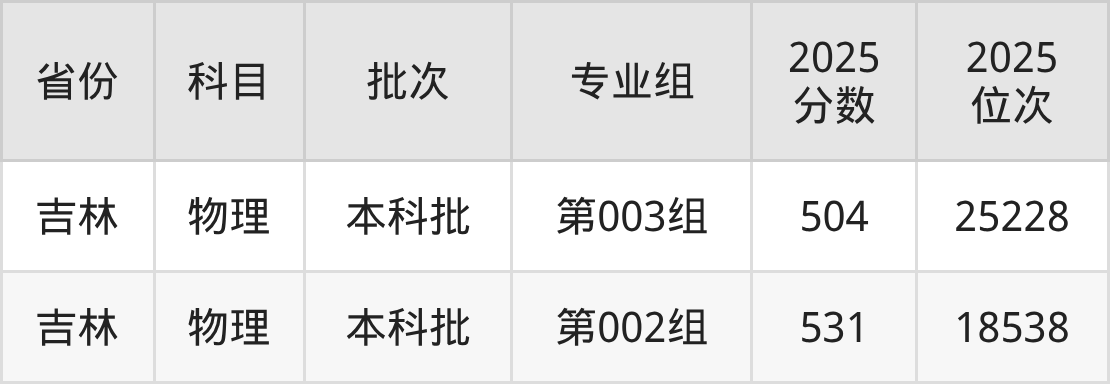 2025年在本科物理类进行招生,各专业组分数线详情如下: