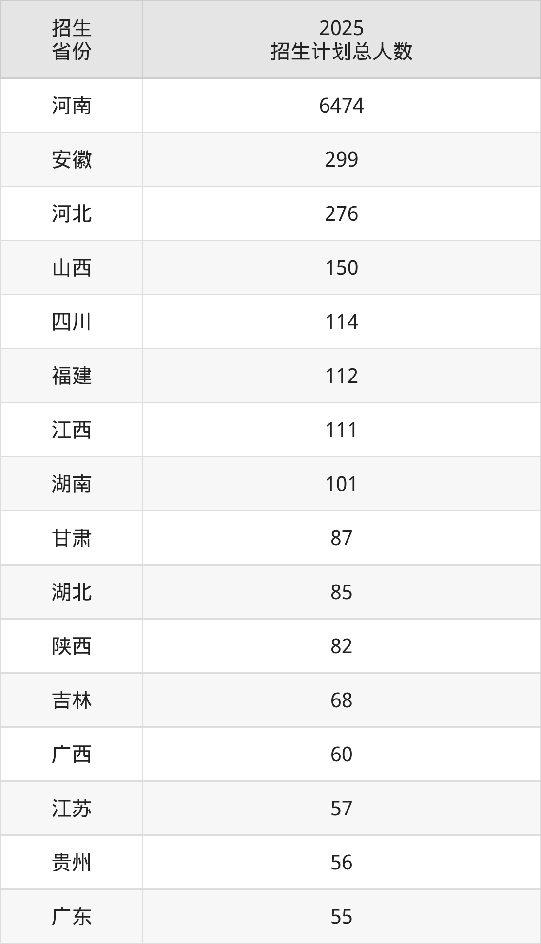 2025年河南理工大学面向全国28个省市开展本科招生;招生专业共67个,招生人数共8248人。2025年在河南省招生计划总人数是6474人,其中,河南理工大学在河南省招生人数最多的是软件工程。河南理工大学在各省具体招生人数情况如下表。