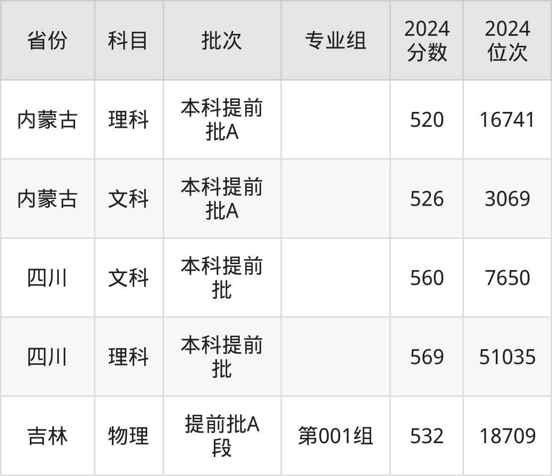 2024年在本科物理类进行招生,各专业组分数线详情如下:
