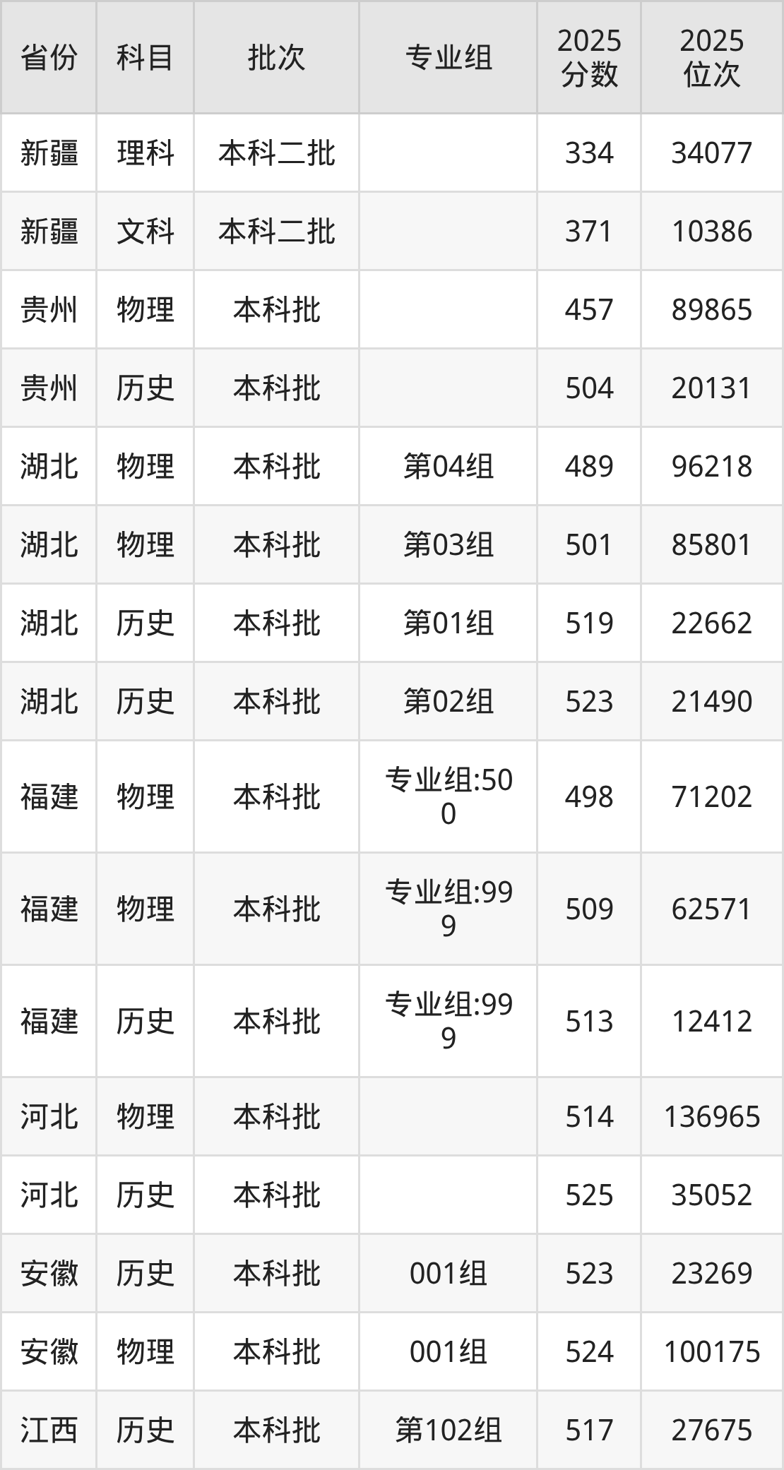 2025年投档录取最低分为334分,录取最低位次为34077名。