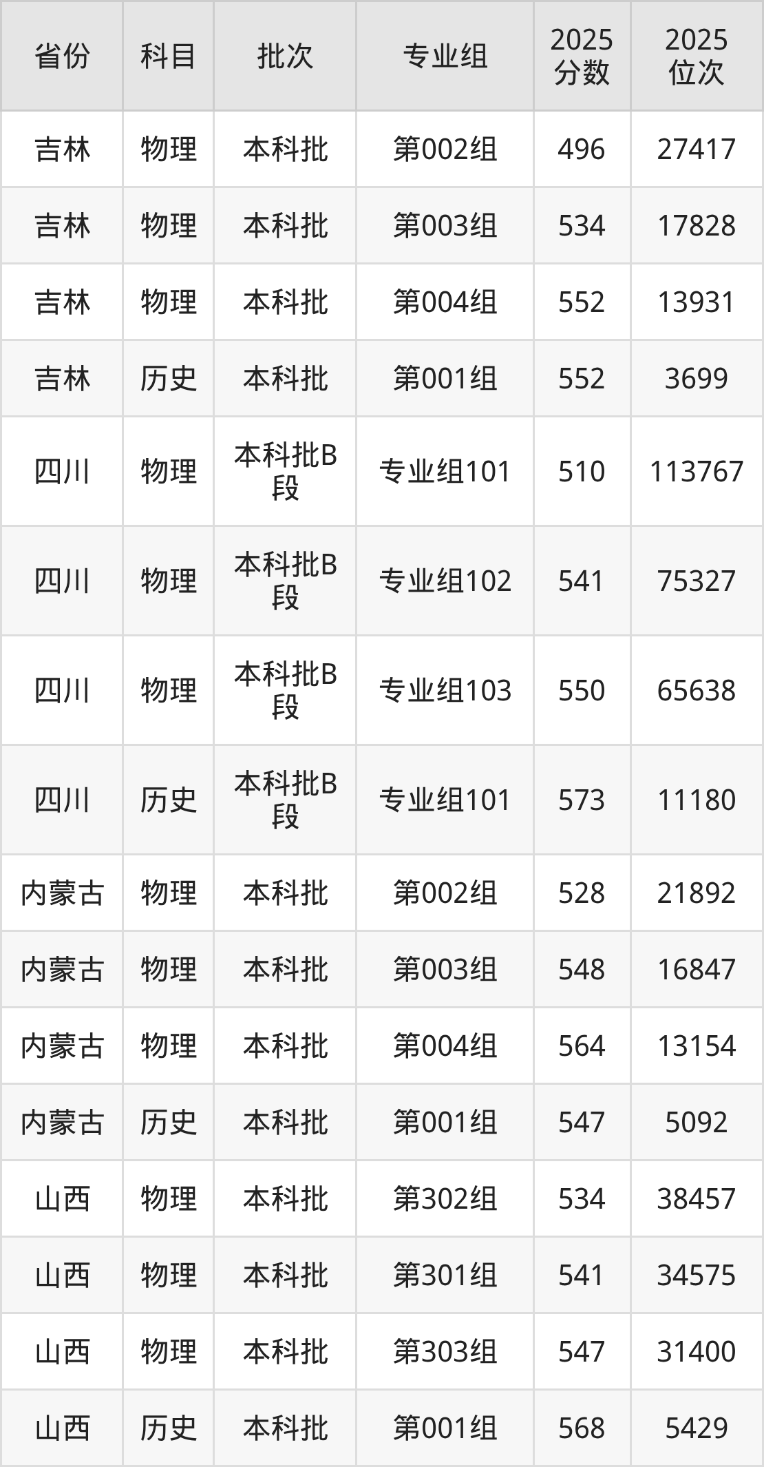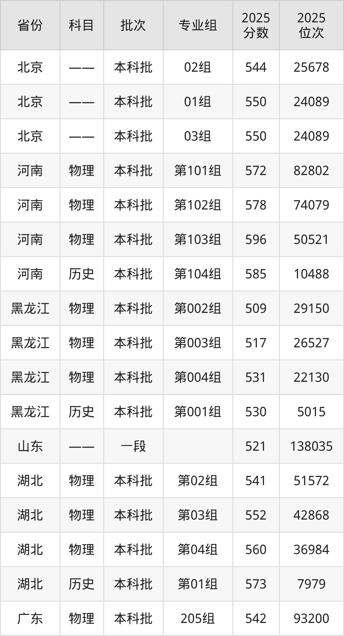 2025年投档录取最低分为526分,录取最低位次为11622名。
