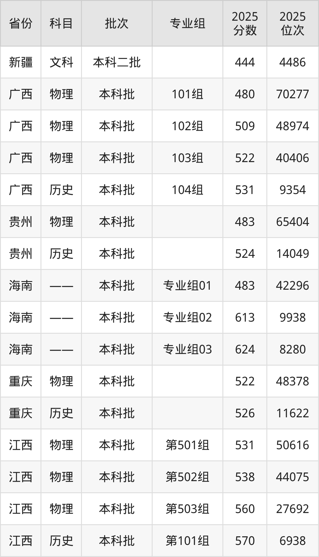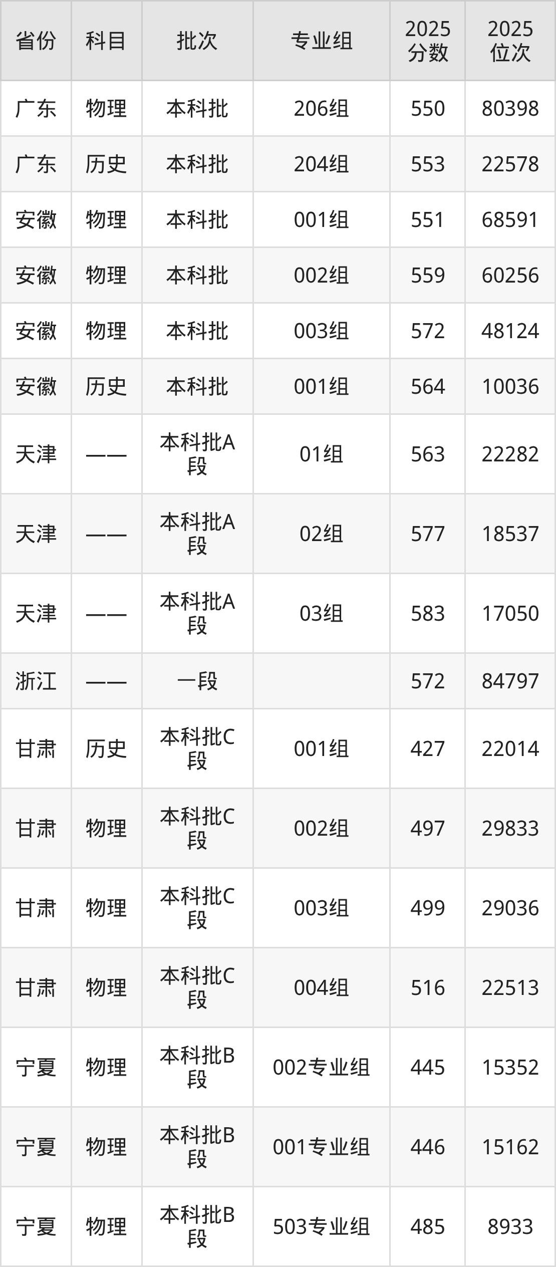 2025年投档录取最低分为584分,录取最低位次为10128名。