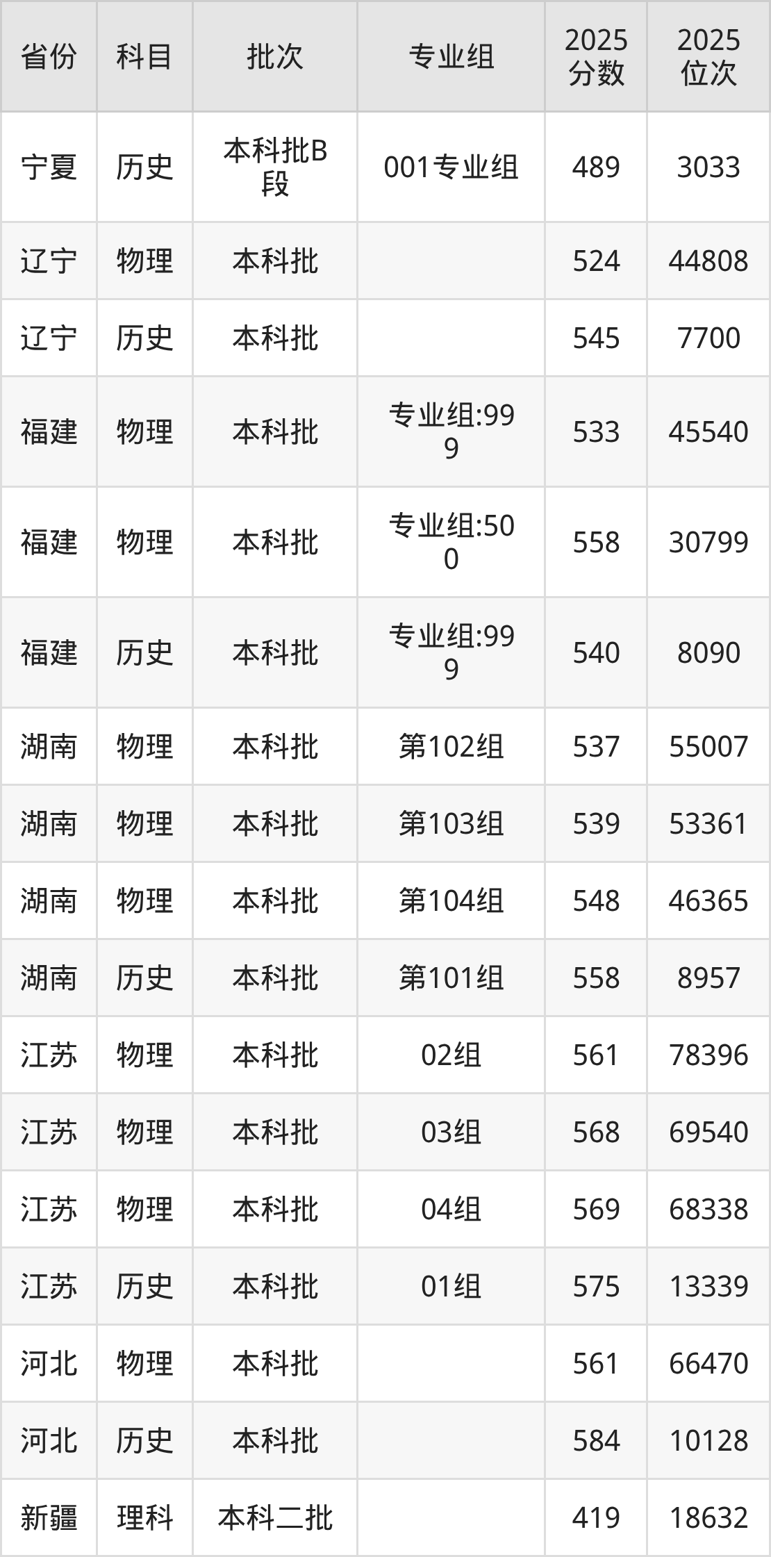 2025年投档录取最低分为419分,录取最低位次为18632名。