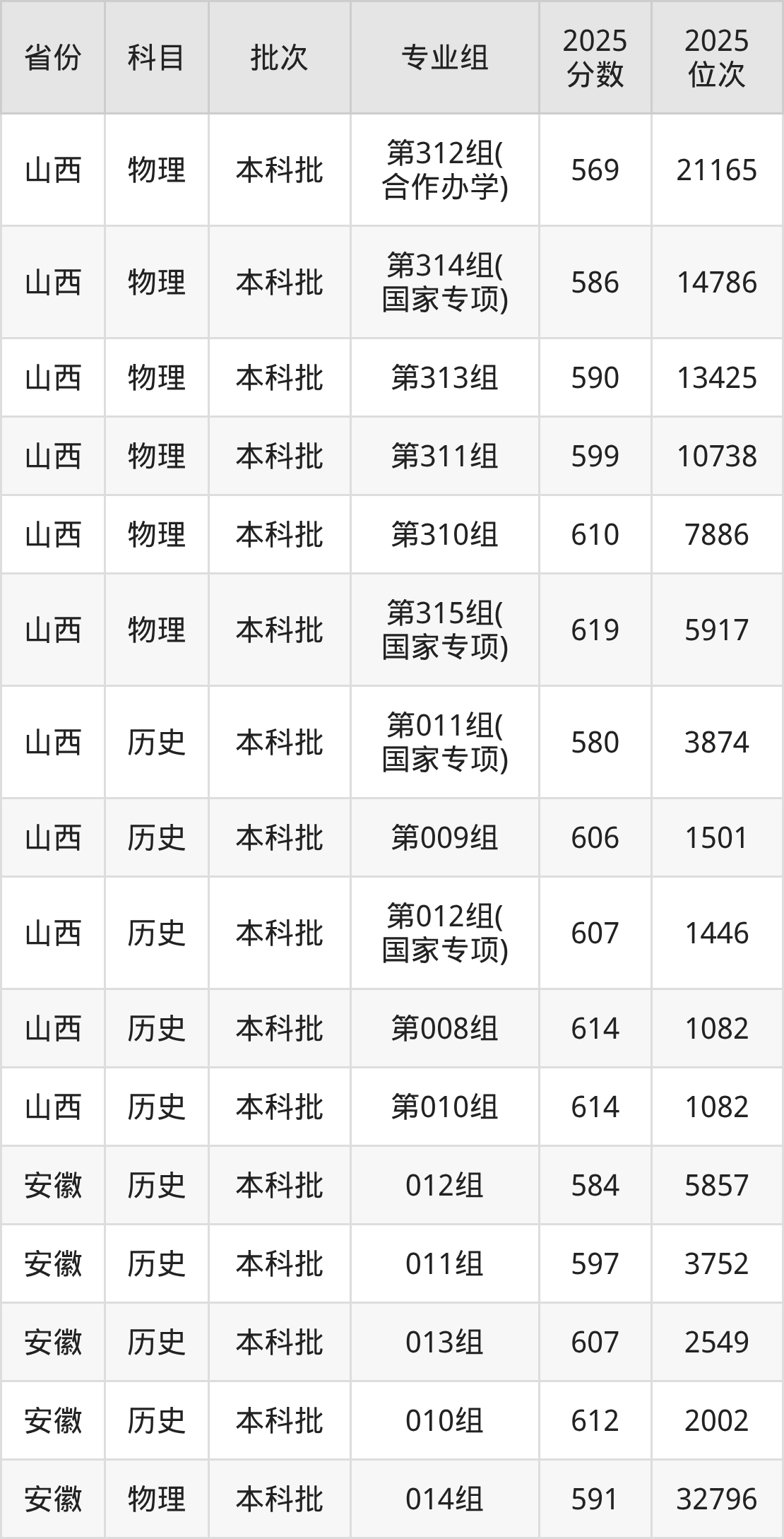 陕西师范大学第308组(国家专项计划组):2025年投档录取最低分为610分,录取最低位次为35524名。