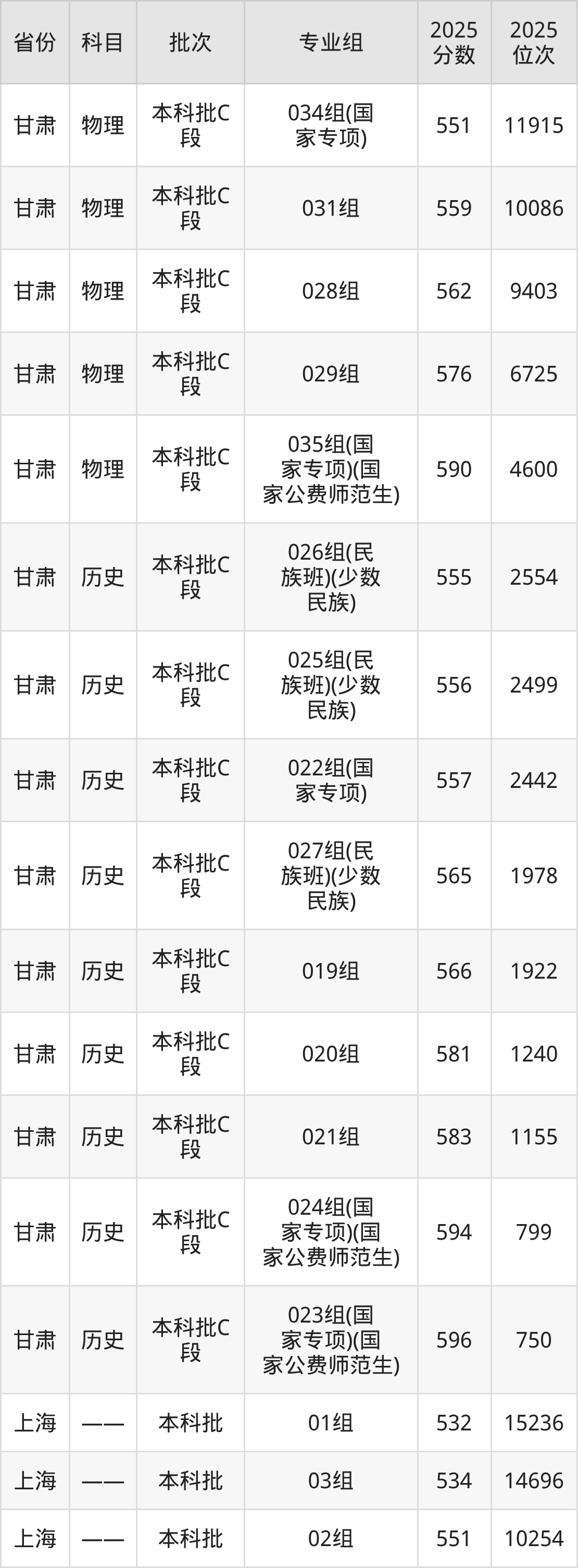陕西师范大学02组:2025年投档录取最低分为603分,录取最低位次为5101名。