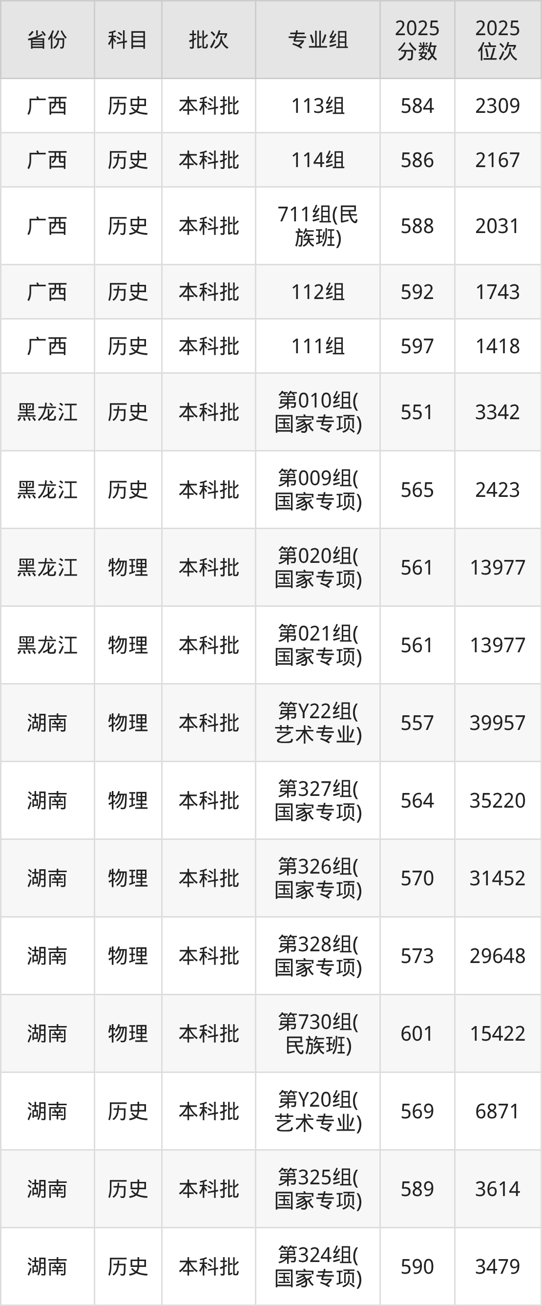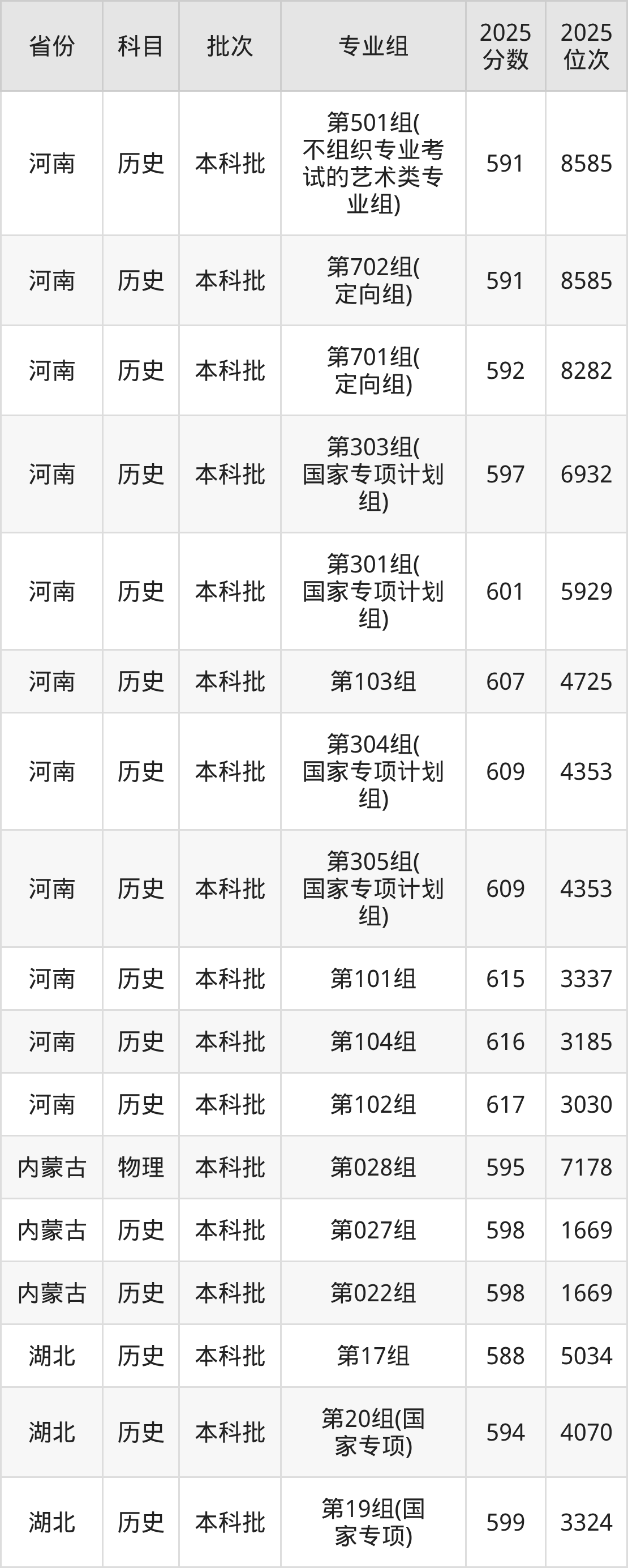 陕西师范大学第301组(国家专项计划组):2025年投档录取最低分为601分,录取最低位次为5929名。