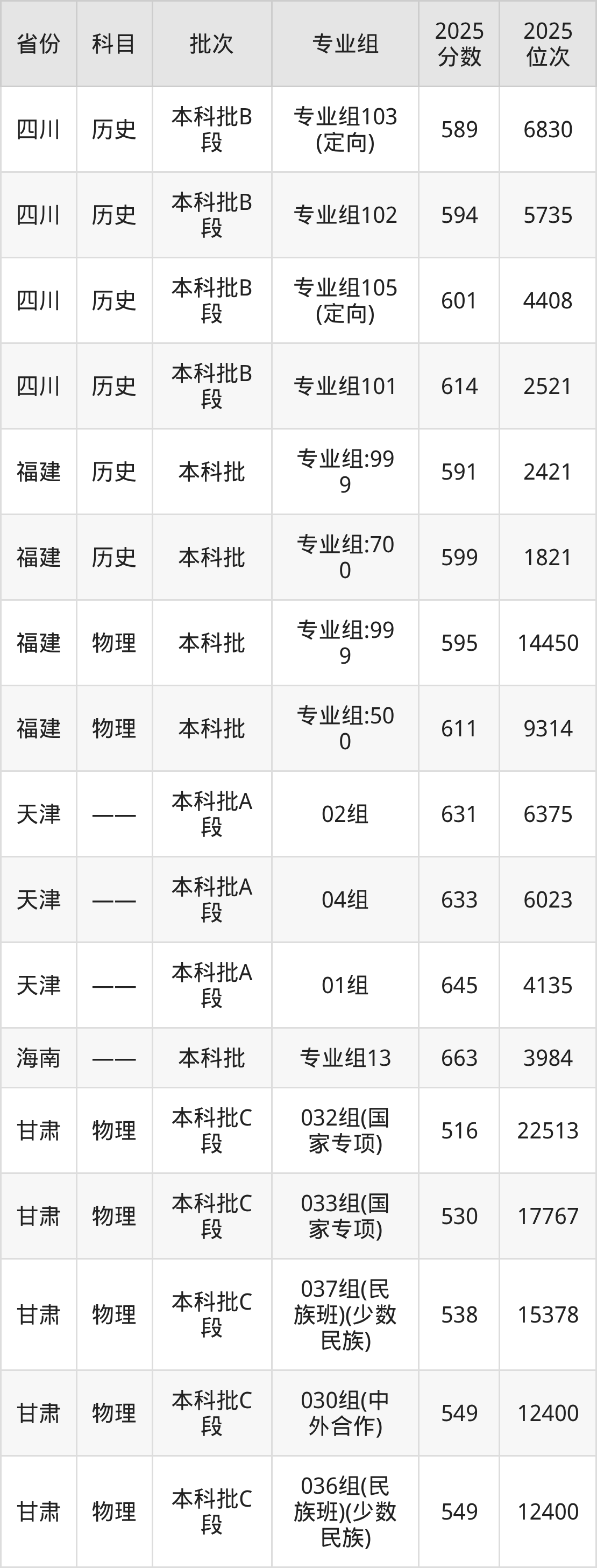 陕西师范大学第305组(国家专项计划组):2025年投档录取最低分为609分,录取最低位次为4353名。