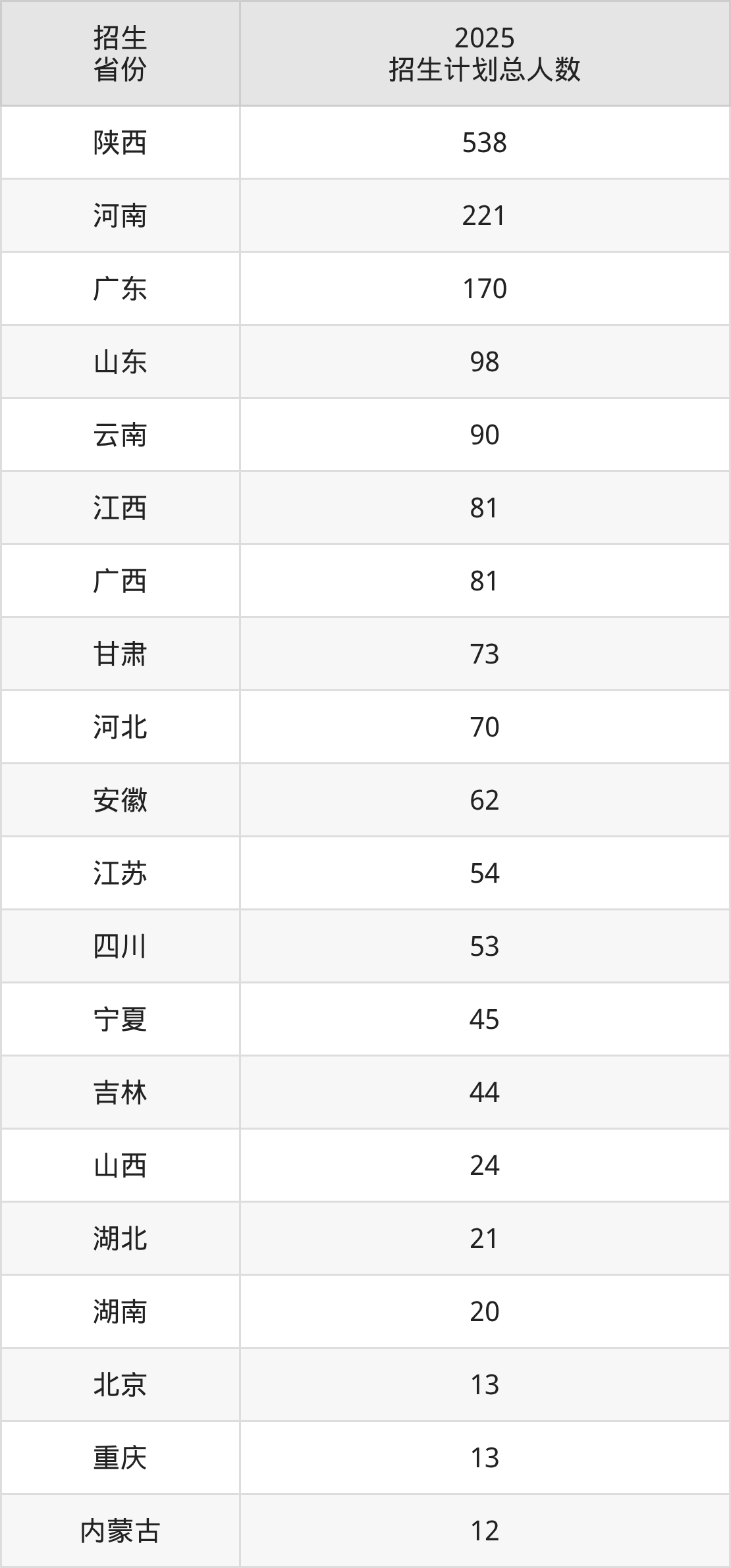 2025年陕西师范大学面向全国26个省市开展本科招生;招生专业共39个,招生人数共1834人。2025年在陕西省招生计划总人数是538人,其中,陕西师范大学在陕西省招生人数最多的是计算机类。陕西师范大学在各省具体招生人数情况如下表。