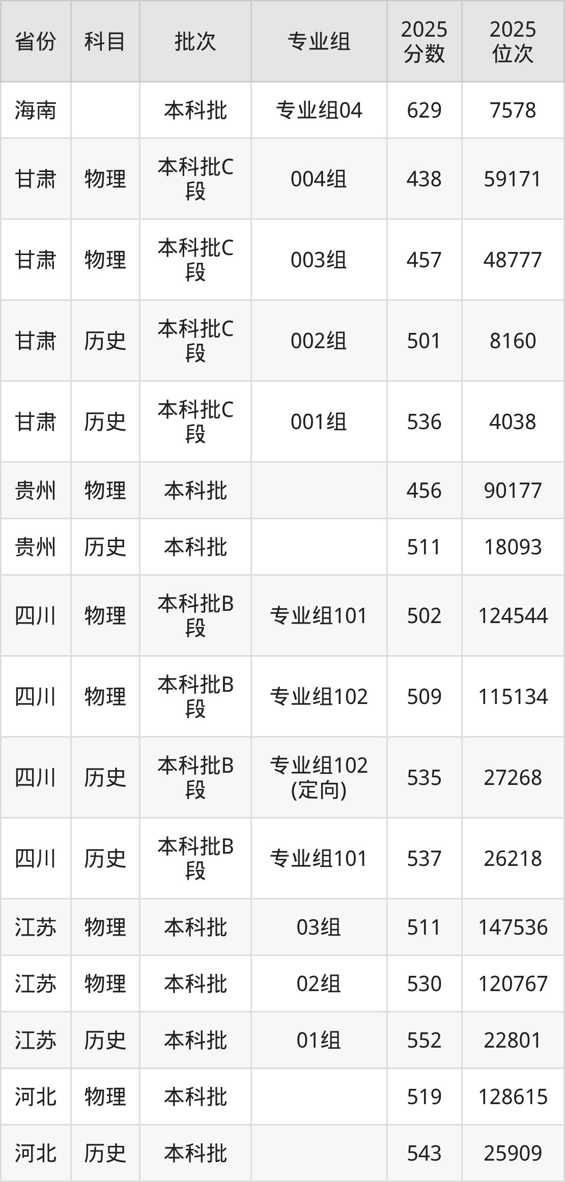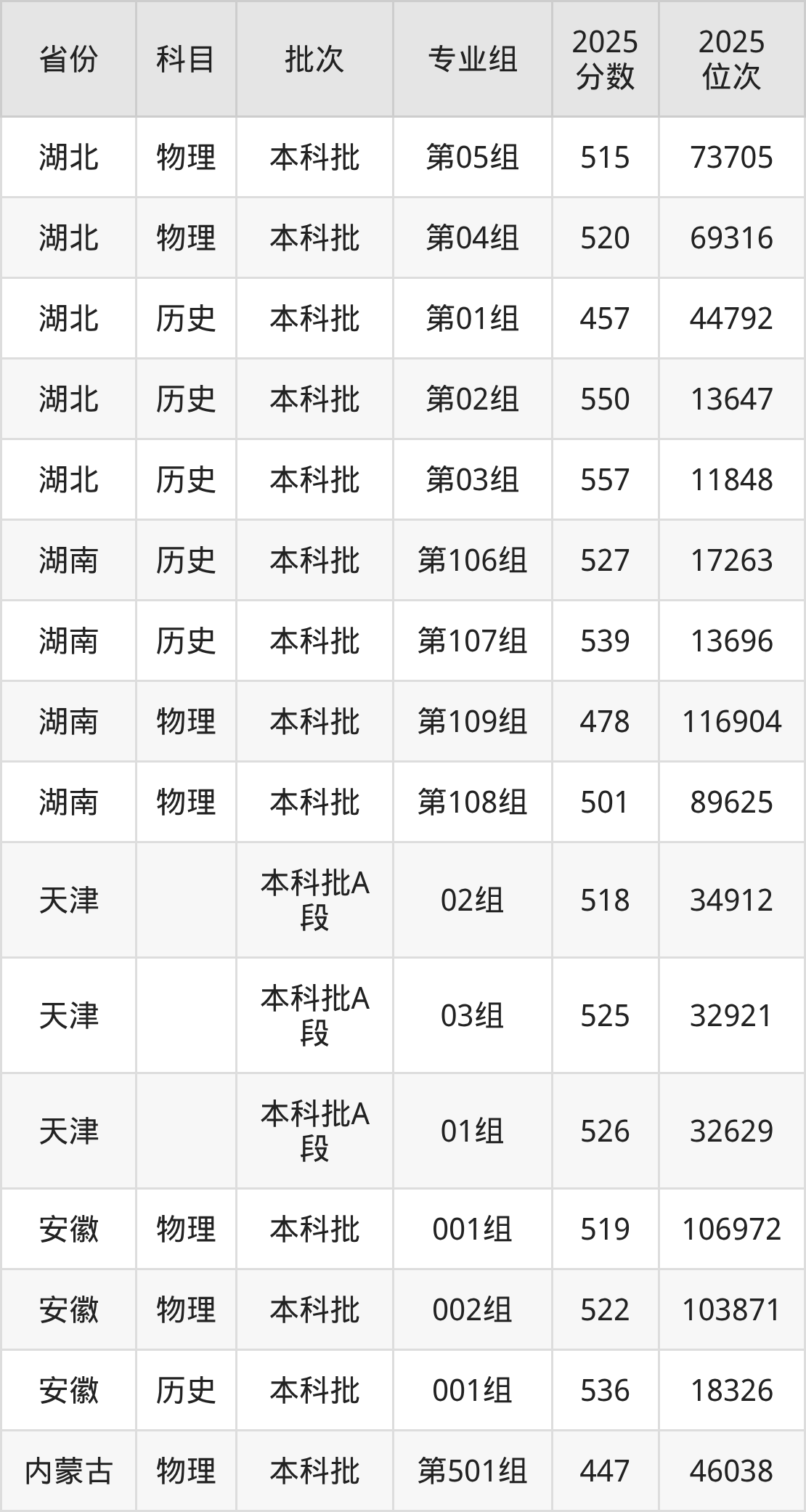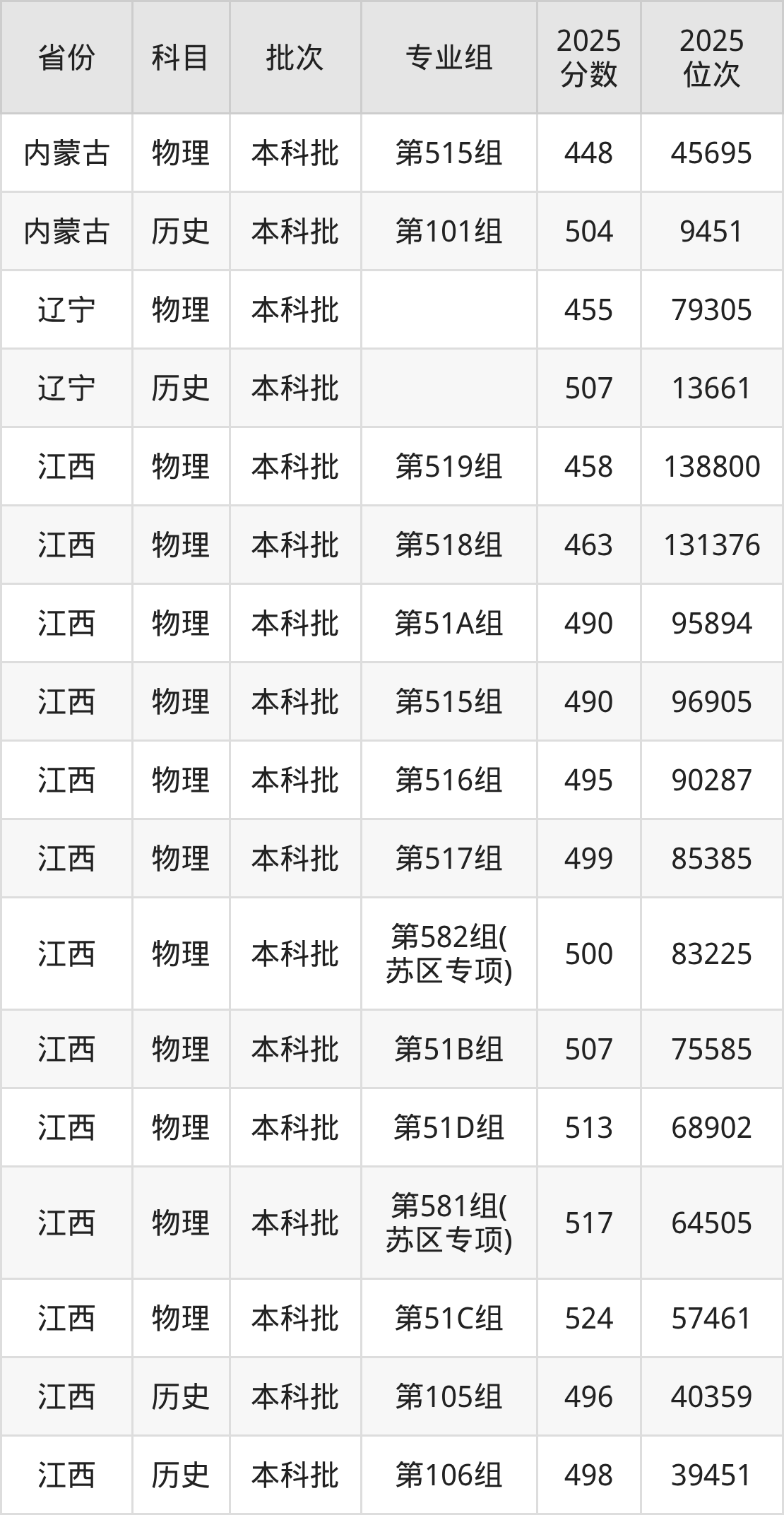 江西科技师范大学第002组:2025年投档录取最低分为543分,录取最低位次为3930名。