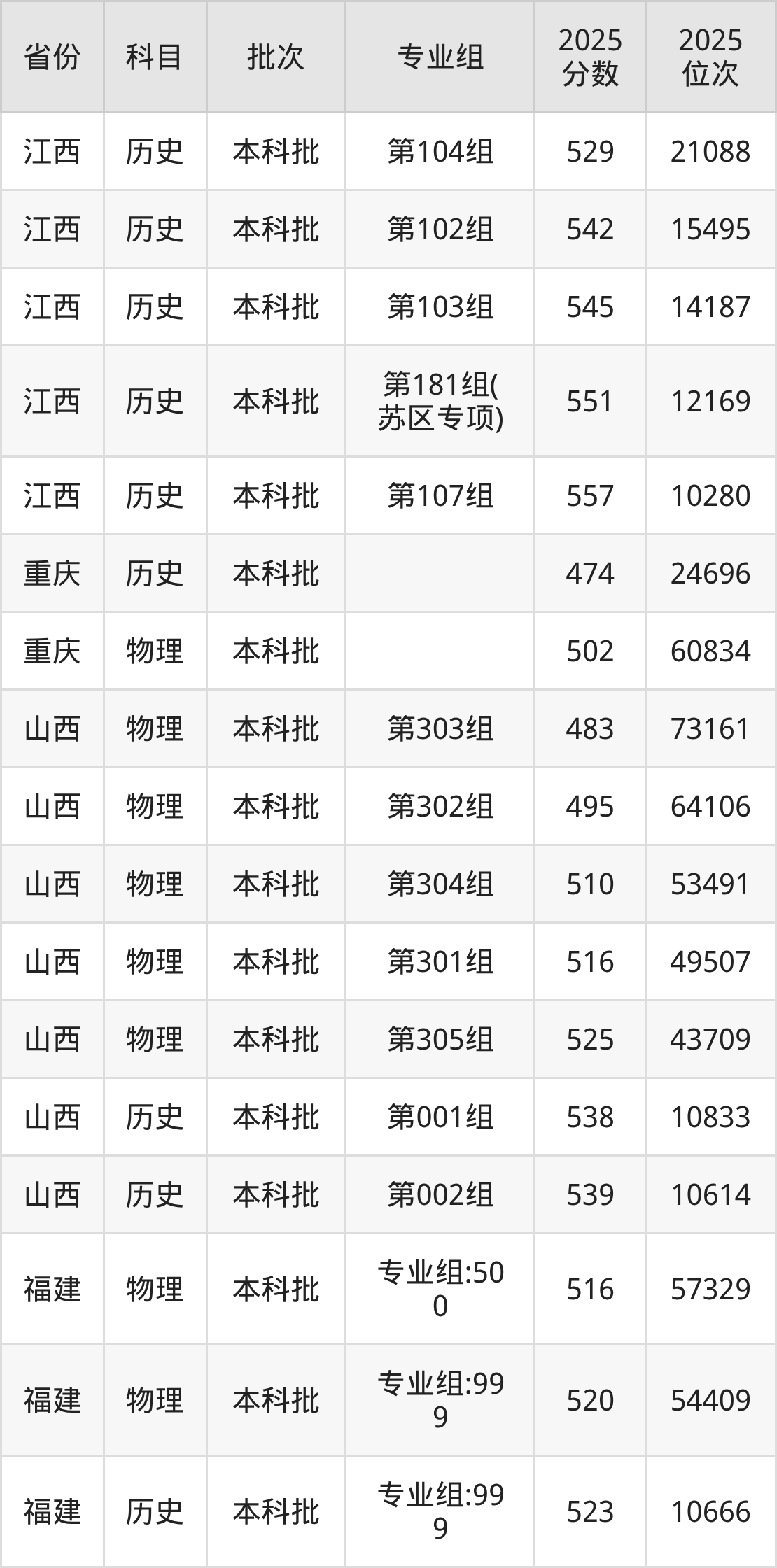江西科技师范大学502专业组:2025年投档录取最低分为429分,录取最低位次为18498名。