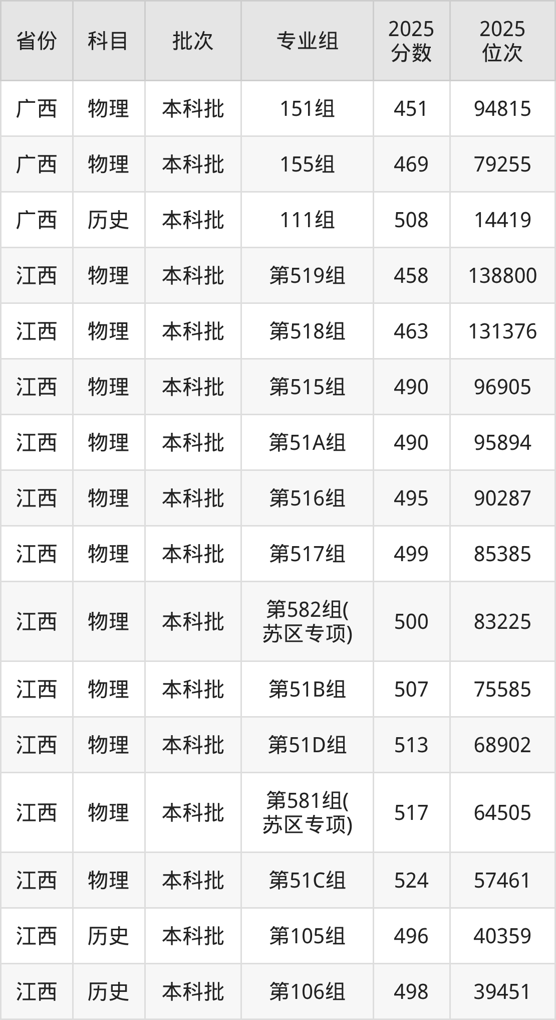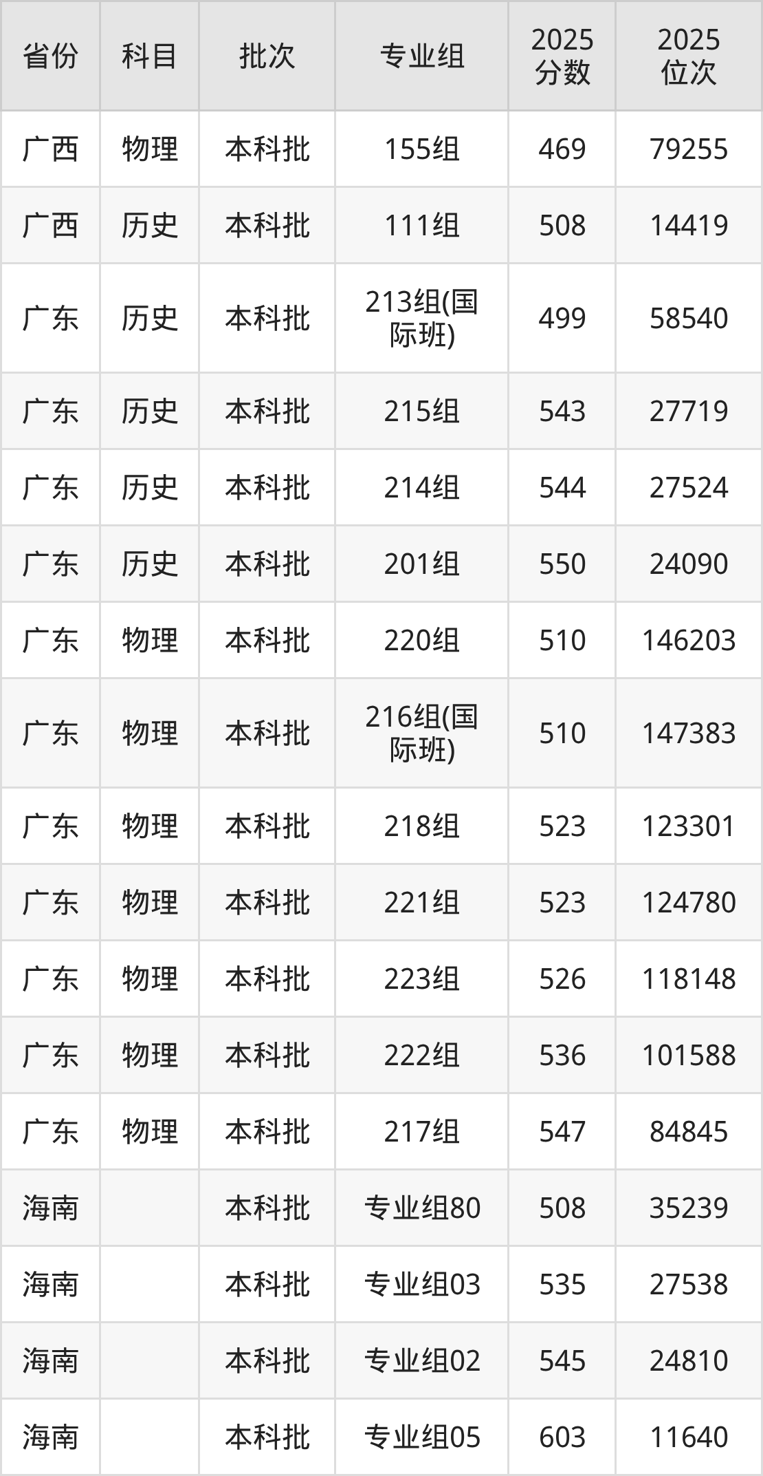 江西科技师范大学第001组:2025年投档录取最低分为505分,录取最低位次为7609名。