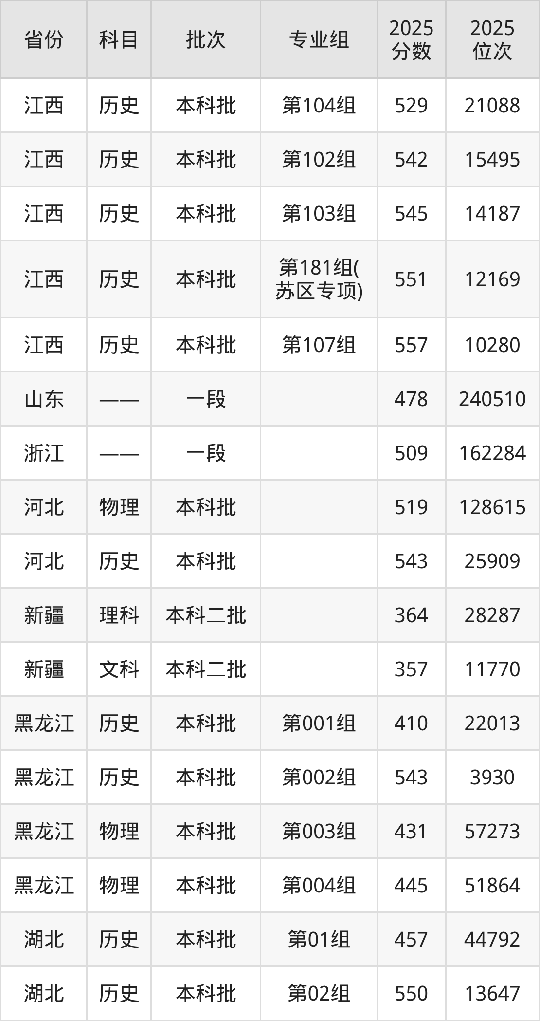 2025年江西科技师范大学全国录取分数线是357分到629分,录取最低在新疆文科、录取最高在海南(专业组04)。各省各专业组最低分具有差异,详情如下: