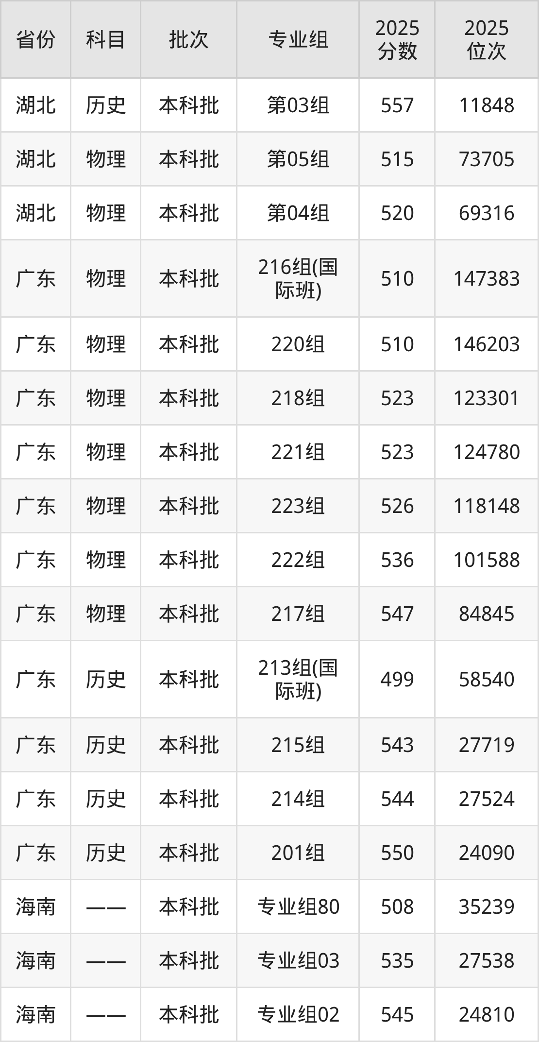 普通类本科物理类最低519分,本科历史类最低536分