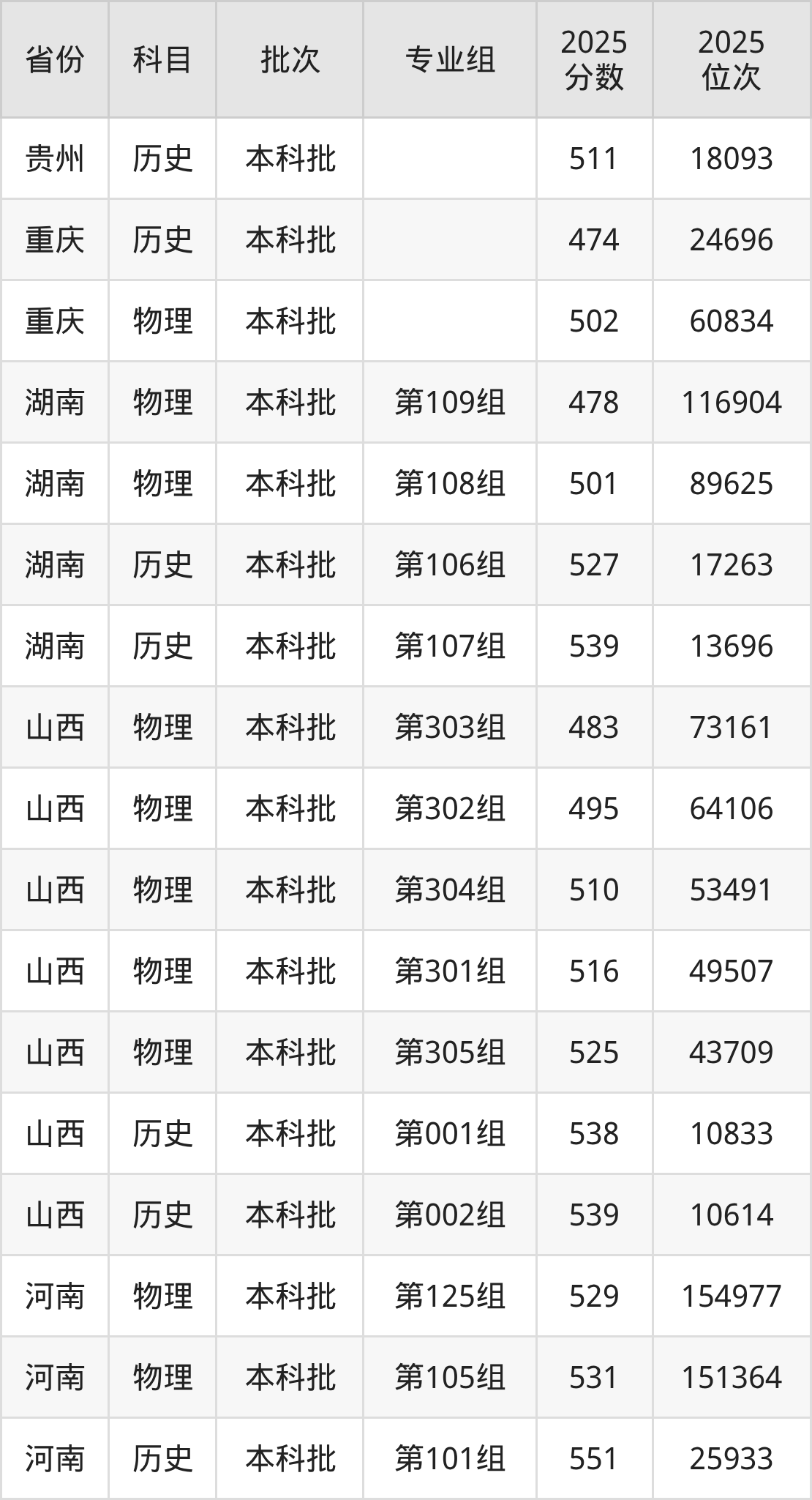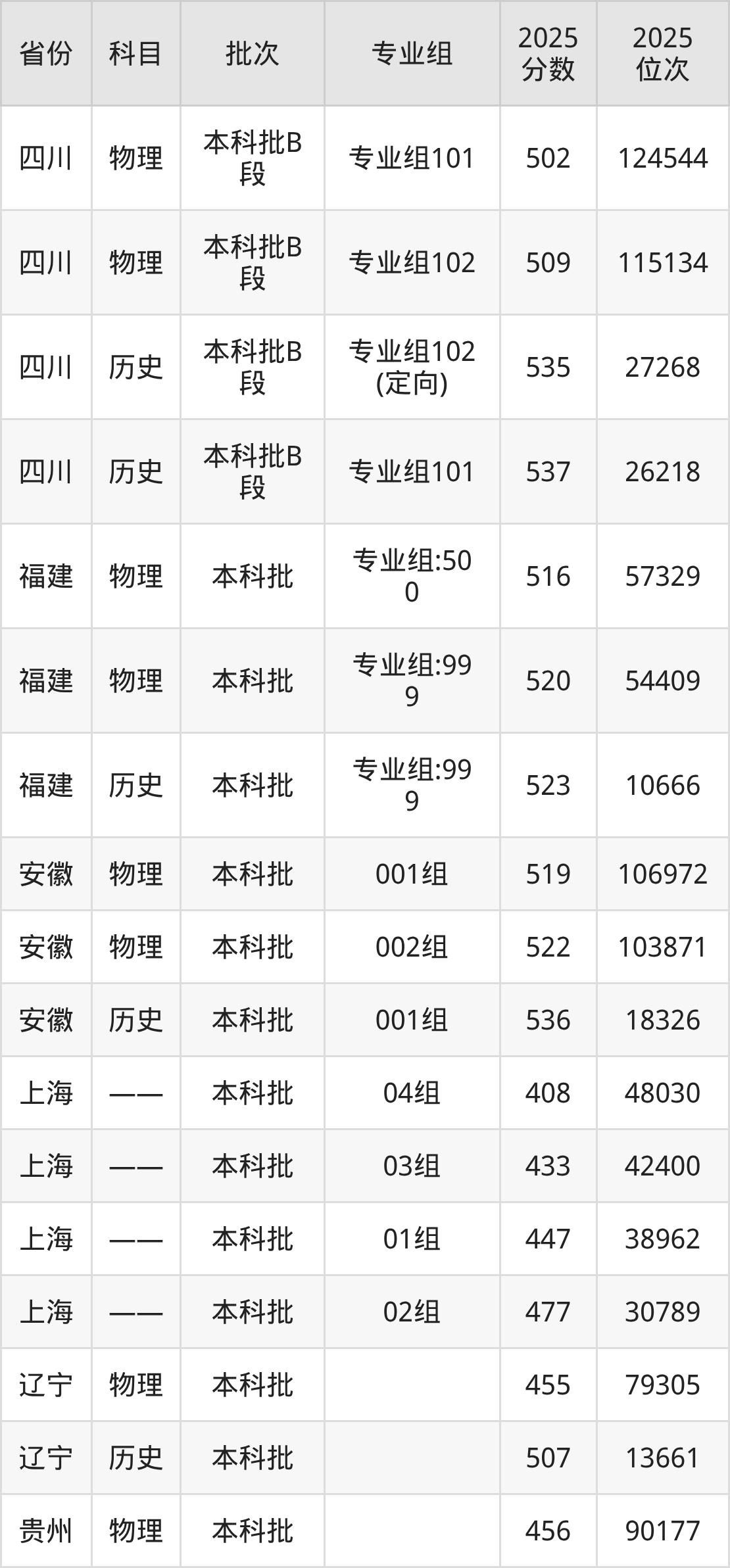 普通类本科物理类最低502分,本科历史类最低535分