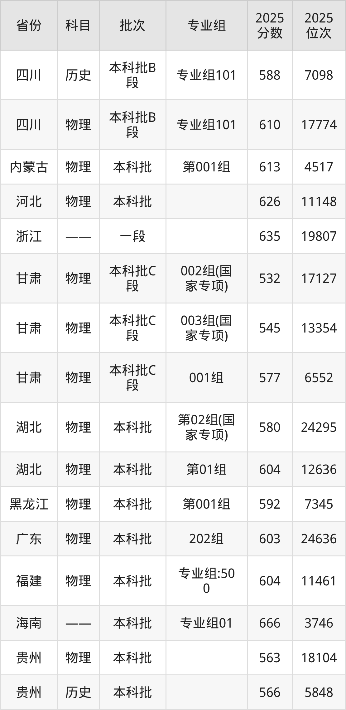 2025年投档录取最低分为563分,录取最低位次为18104名。