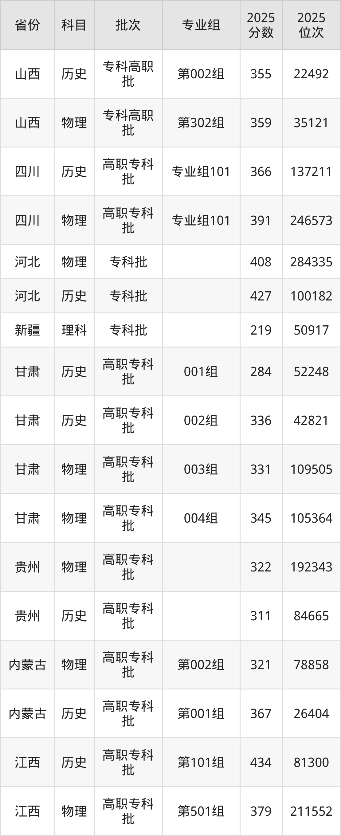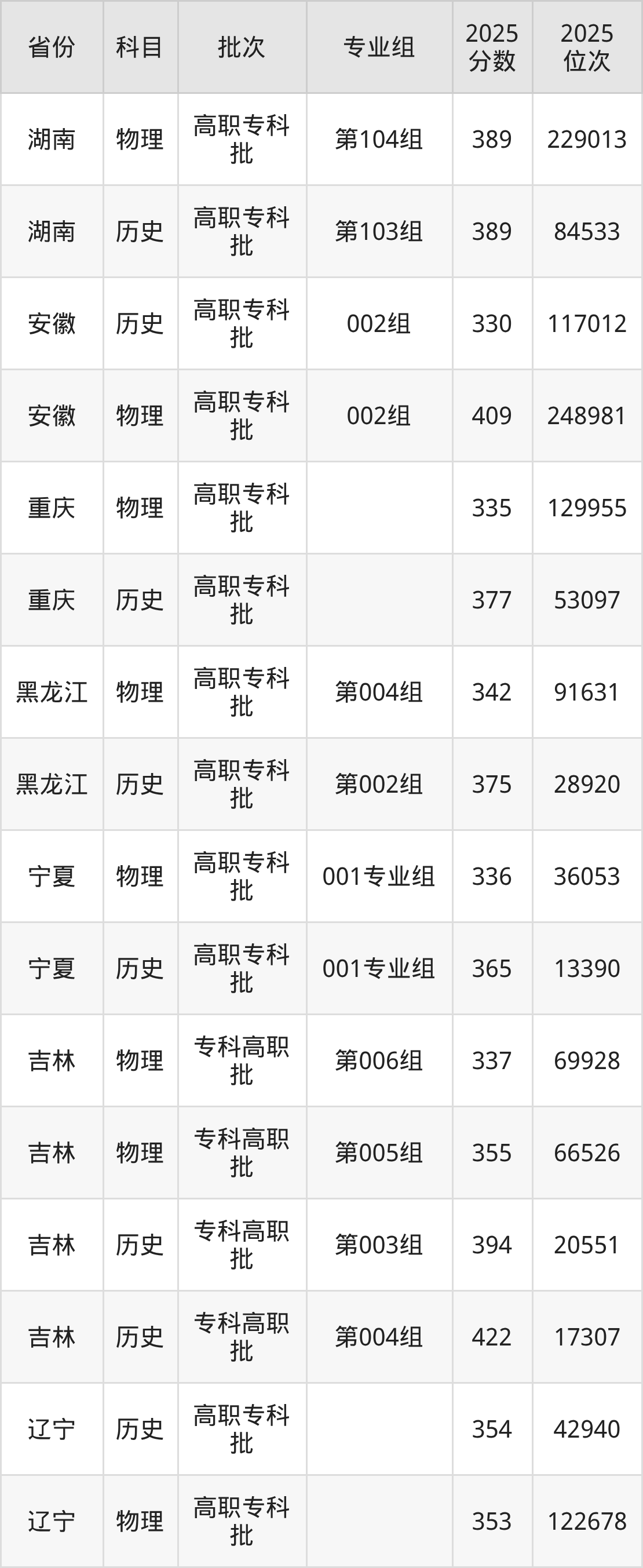 辽宁省交通高等专科学校001专业组:2025年投档录取最低分为365分,录取最低位次为13390名。