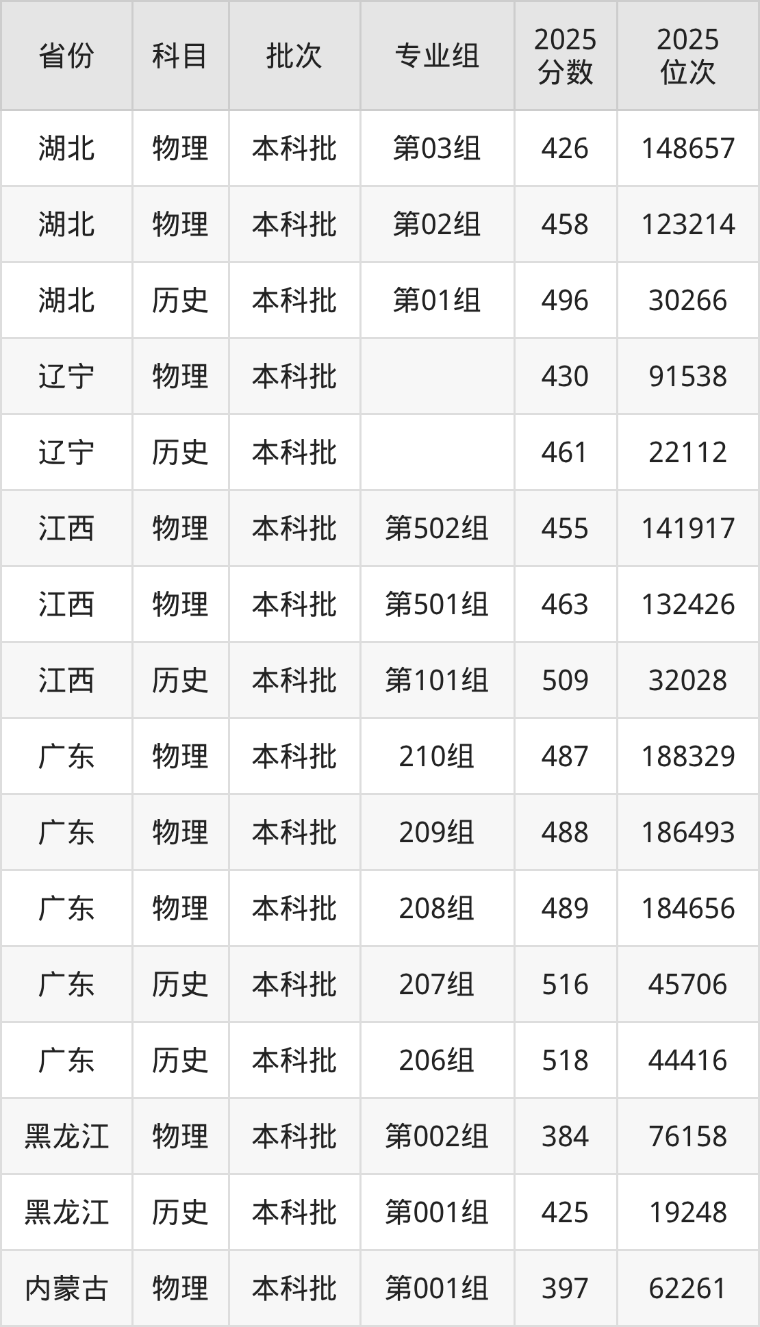 2025年投档录取最低分为468分,录取最低位次为81501名。