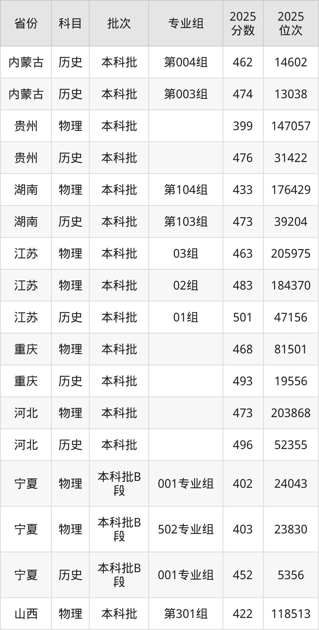 2025年投档录取最低分为493分,录取最低位次为19556名。