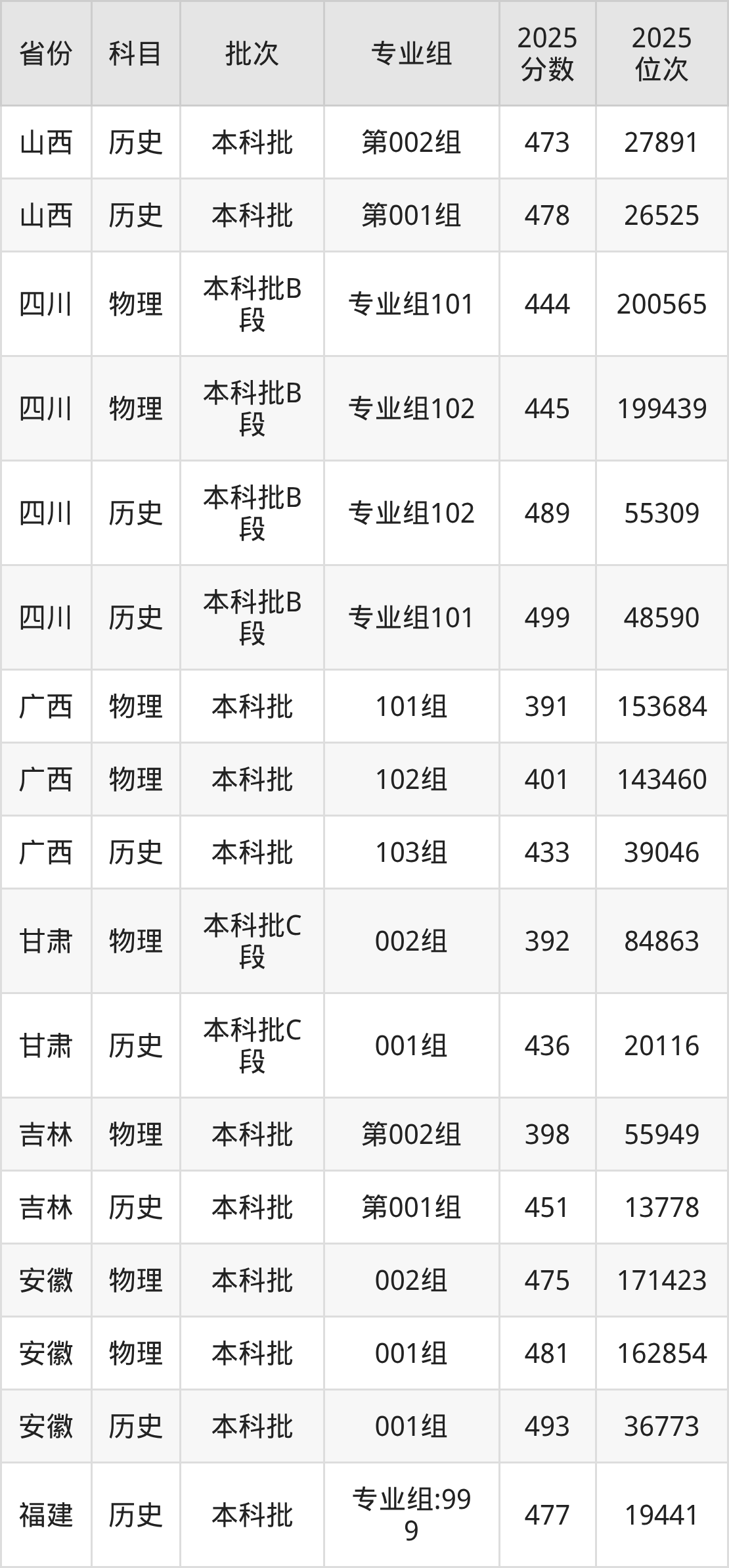 福州大学至诚学院第002组:2025年投档录取最低分为473分,录取最低位次为27891名。