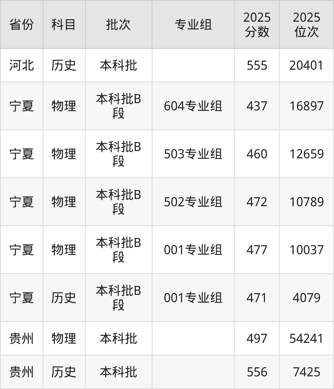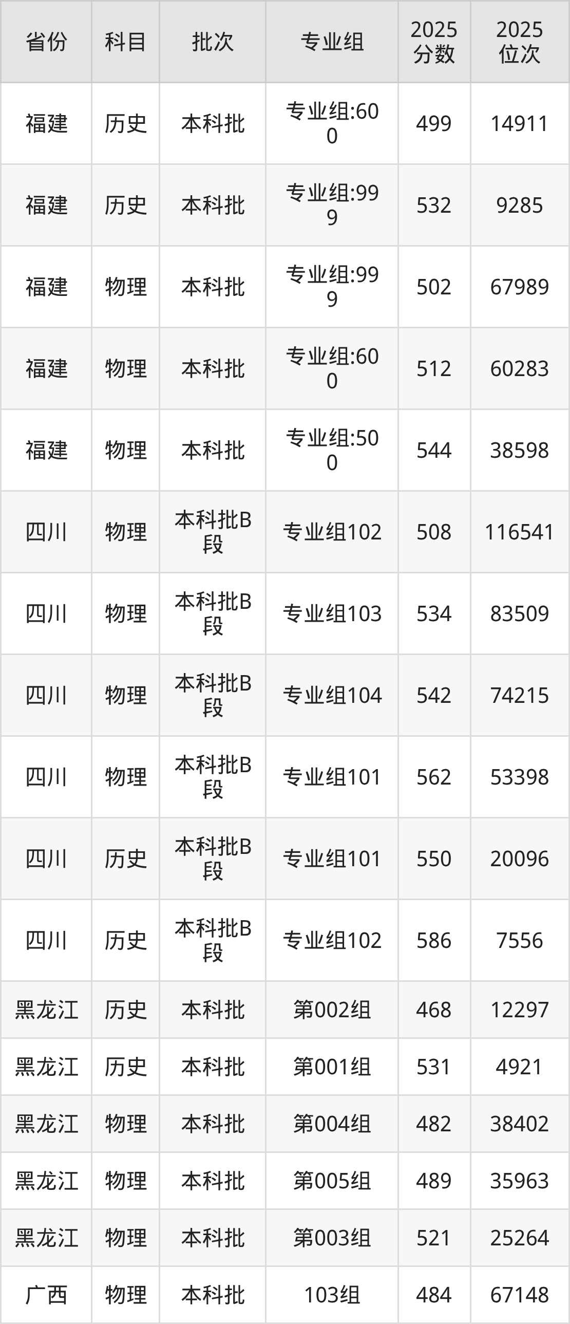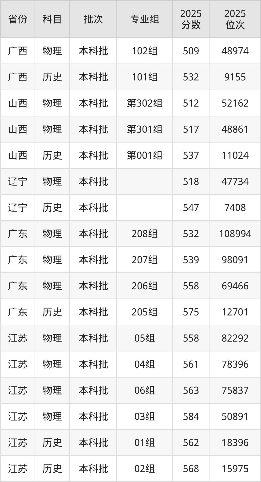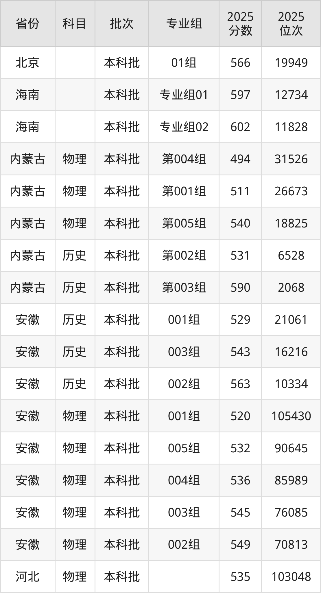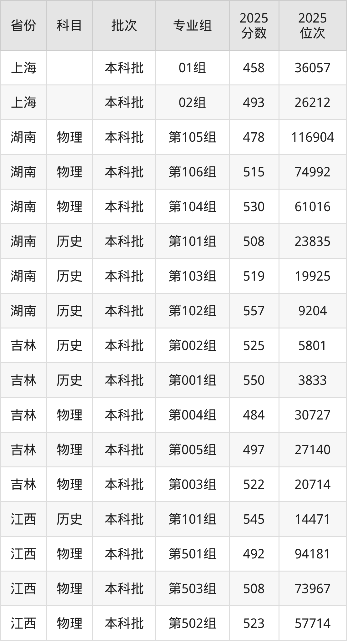 2025年投档录取最低分为556分,录取最低位次为7425名。