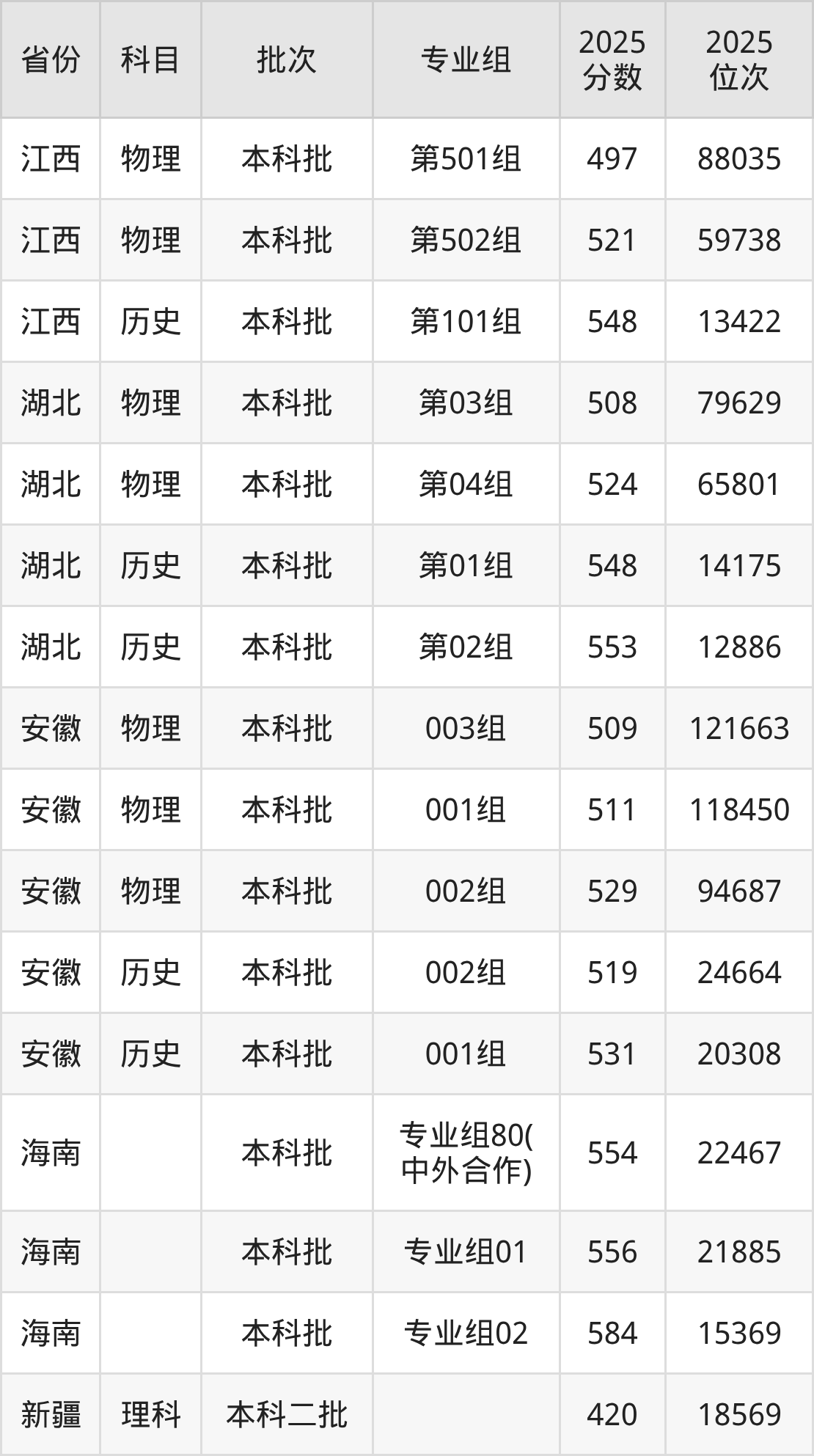 2025年投档录取最低分为420分,录取最低位次为18569名。