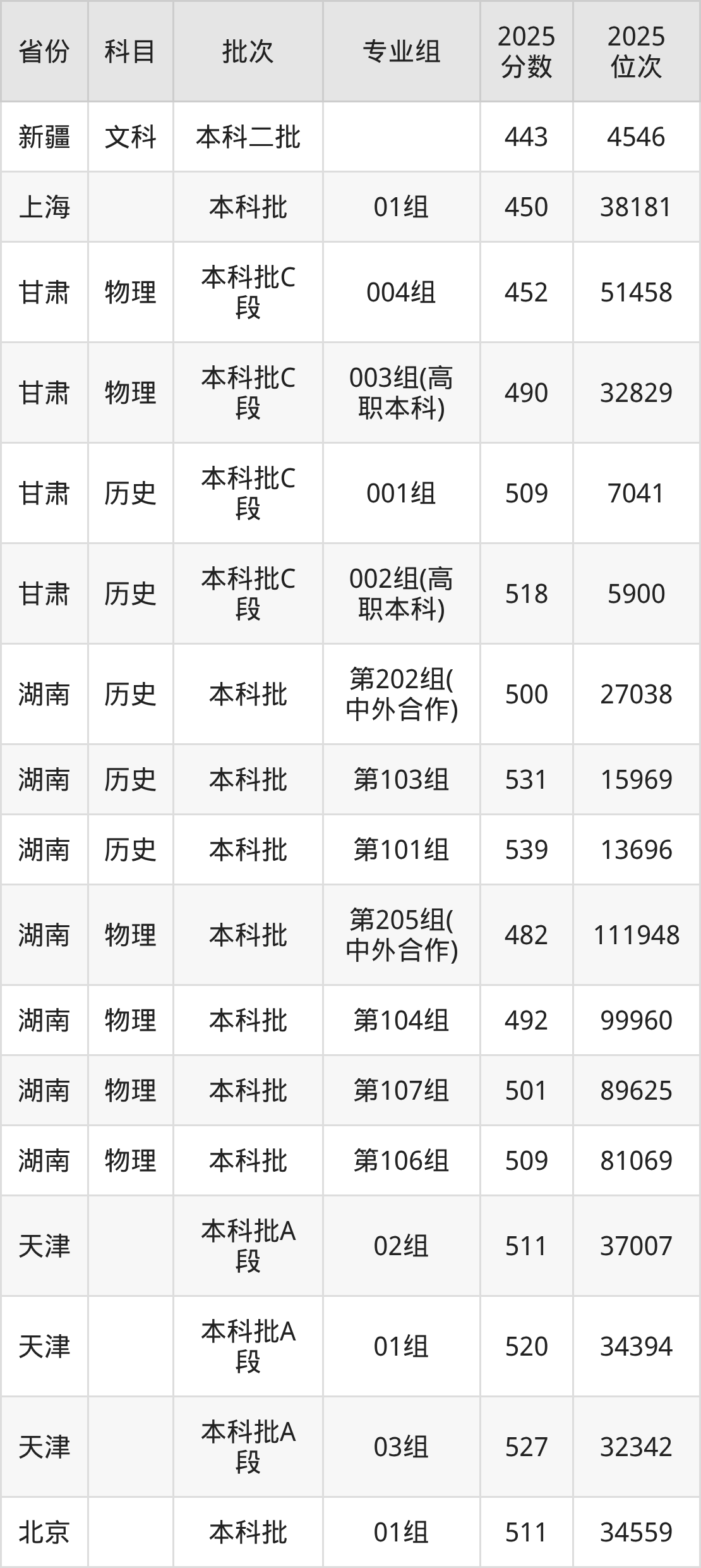 2025年投档录取最低分为443分,录取最低位次为4546名。