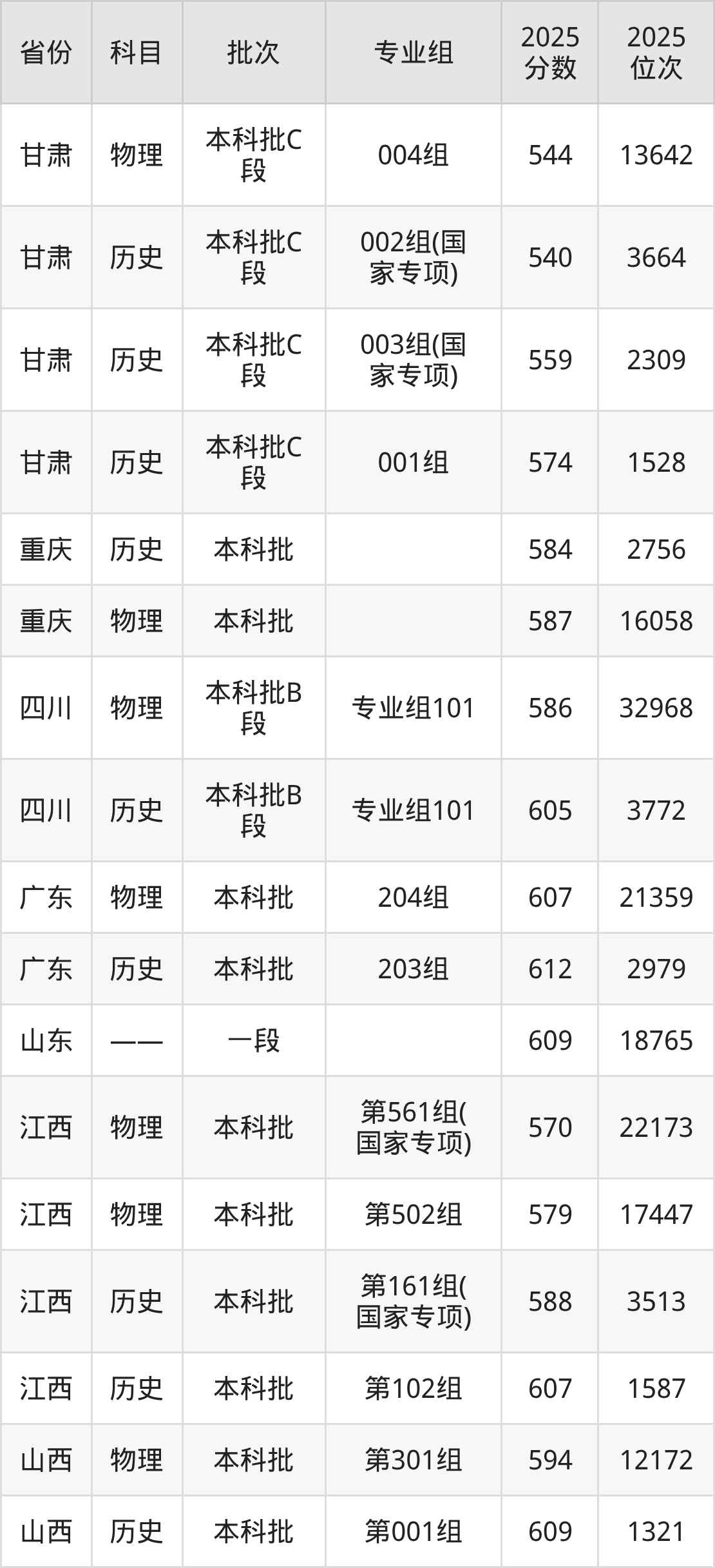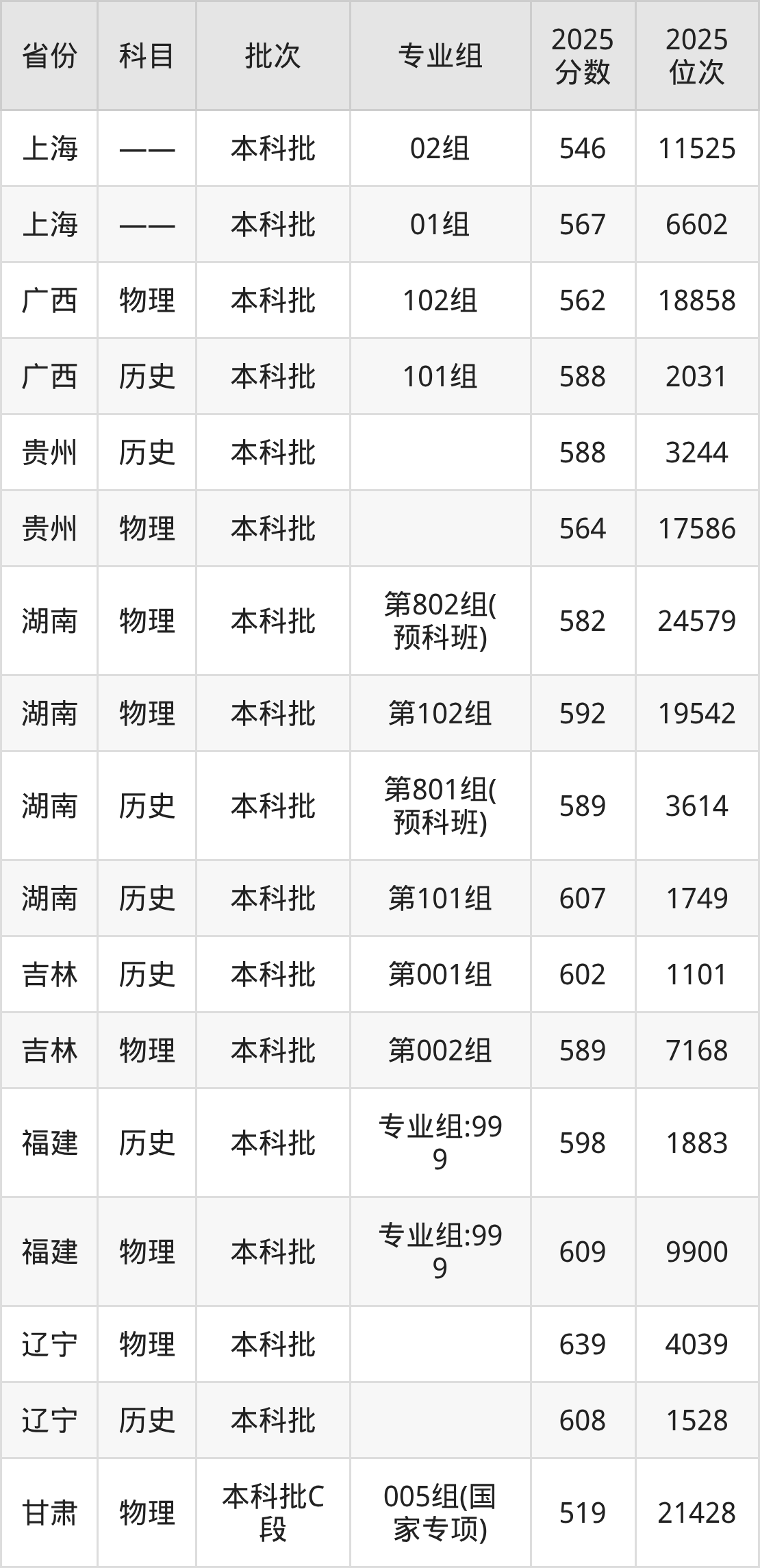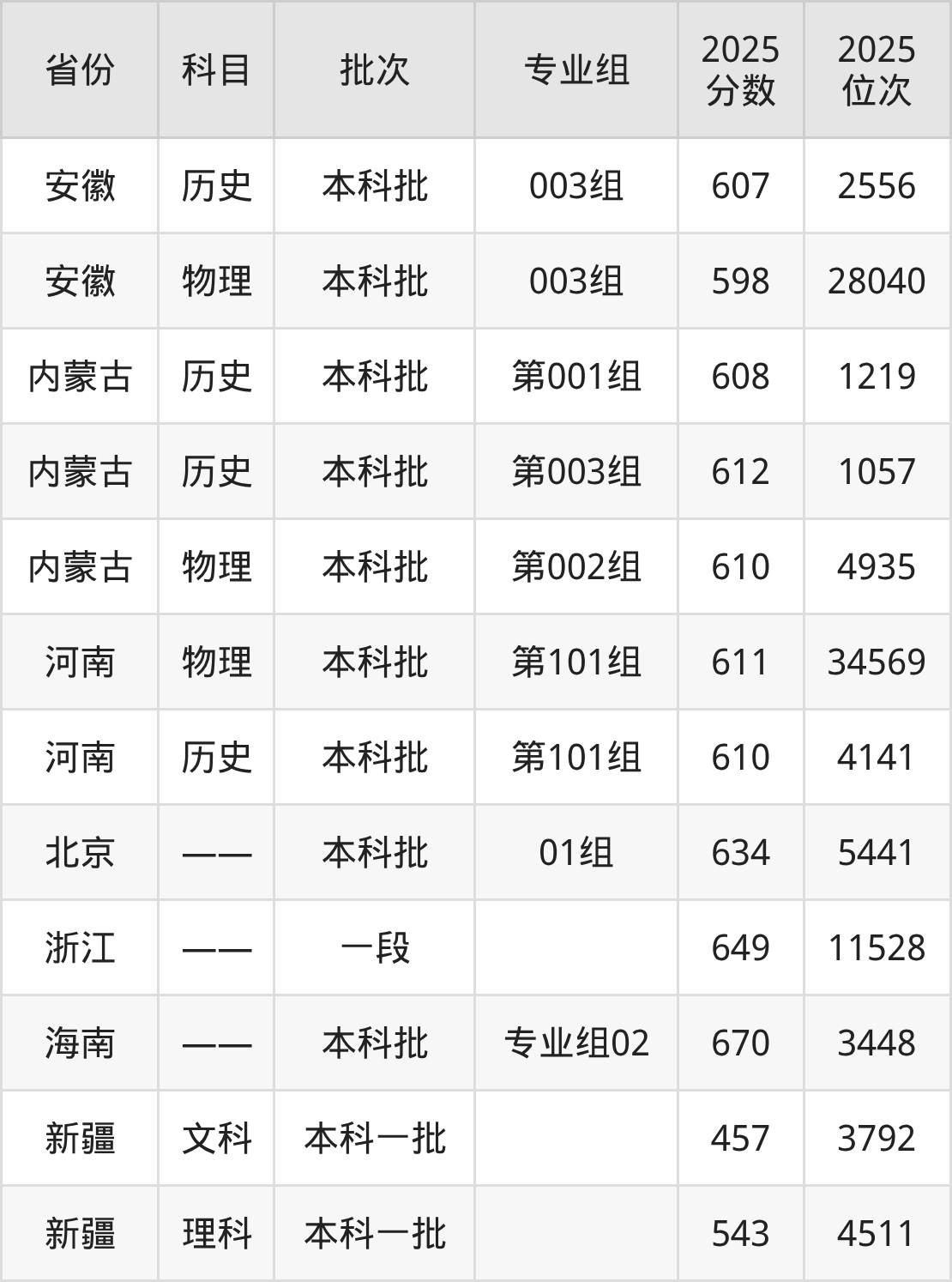 下面是2025年华东政法大学全国录取分数线一览表,请查阅。