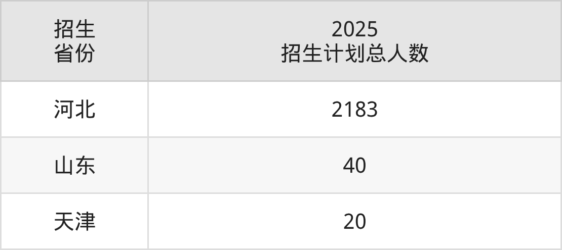 2025年沧州职业技术学院面向全国3个省市开展专科招生;招生专业共56个,招生人数共2243人。