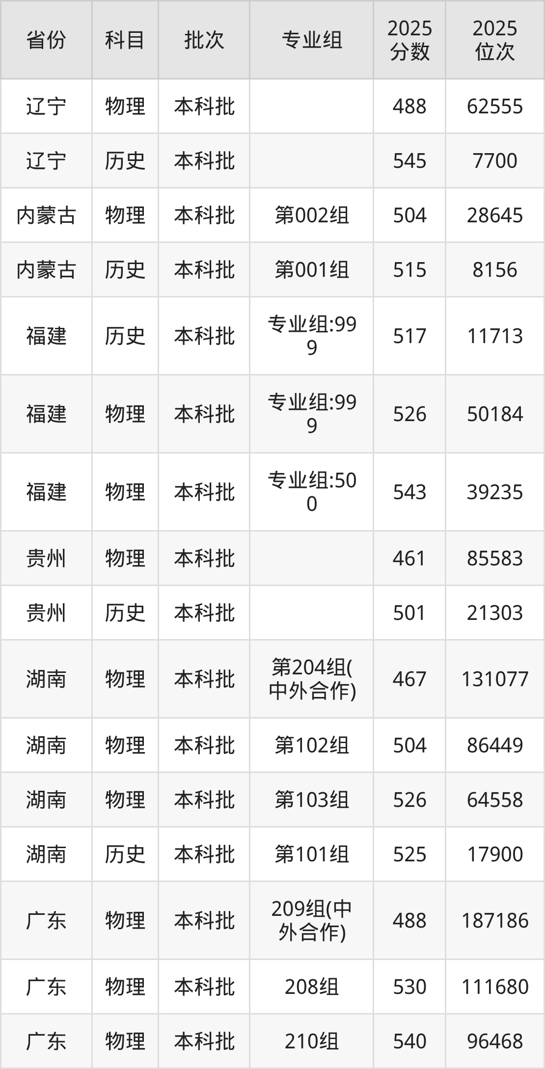 湖北经济学院04组(中外合作办学):2025年投档录取最低分为505分,录取最低位次为155895名。