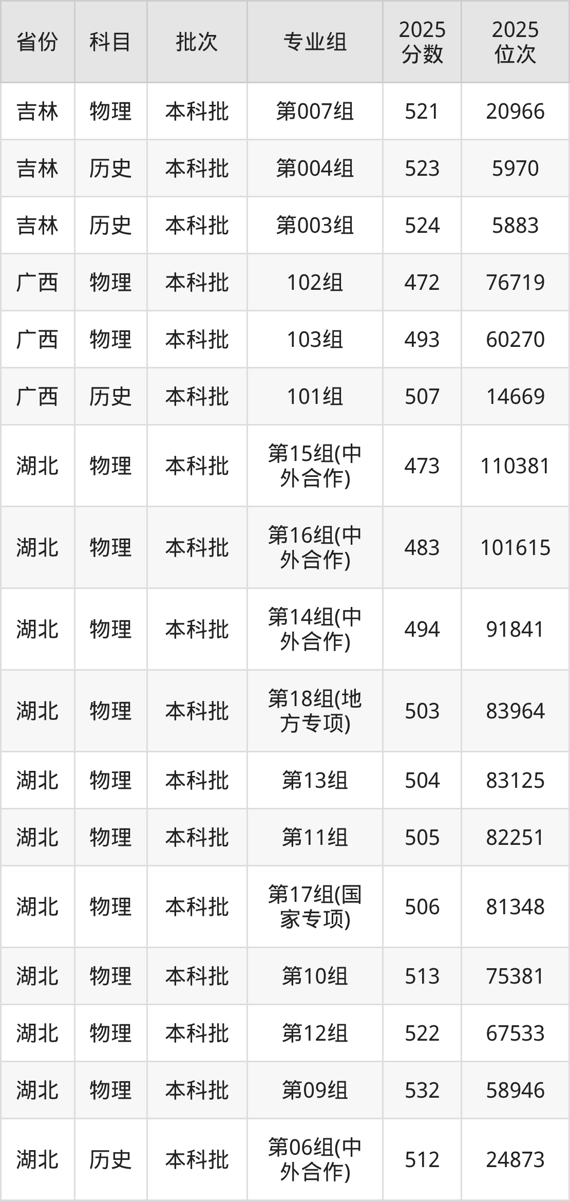 湖北经济学院第002组(合作办学):2025年投档录取最低分为503分,录取最低位次为19461名。