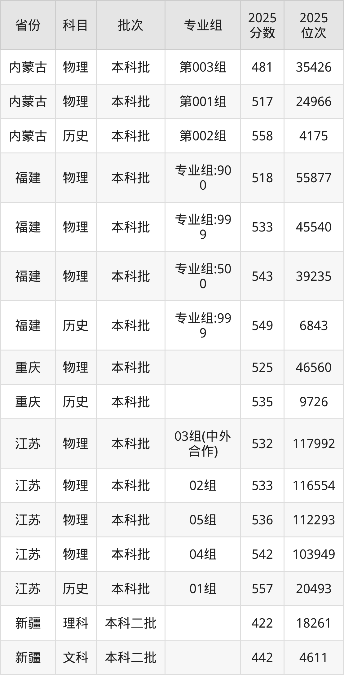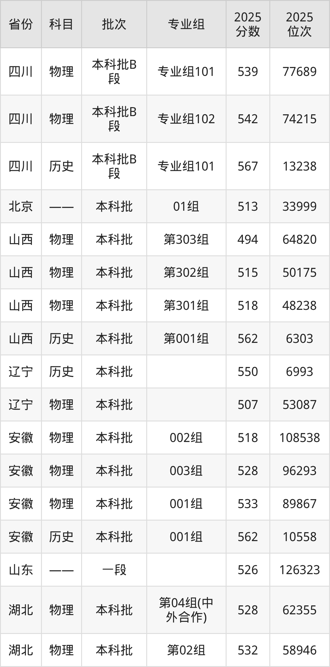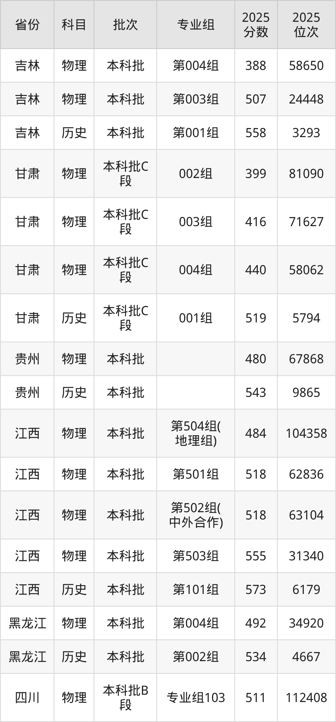 普通类本科物理类最低543分,本科历史类最低582分