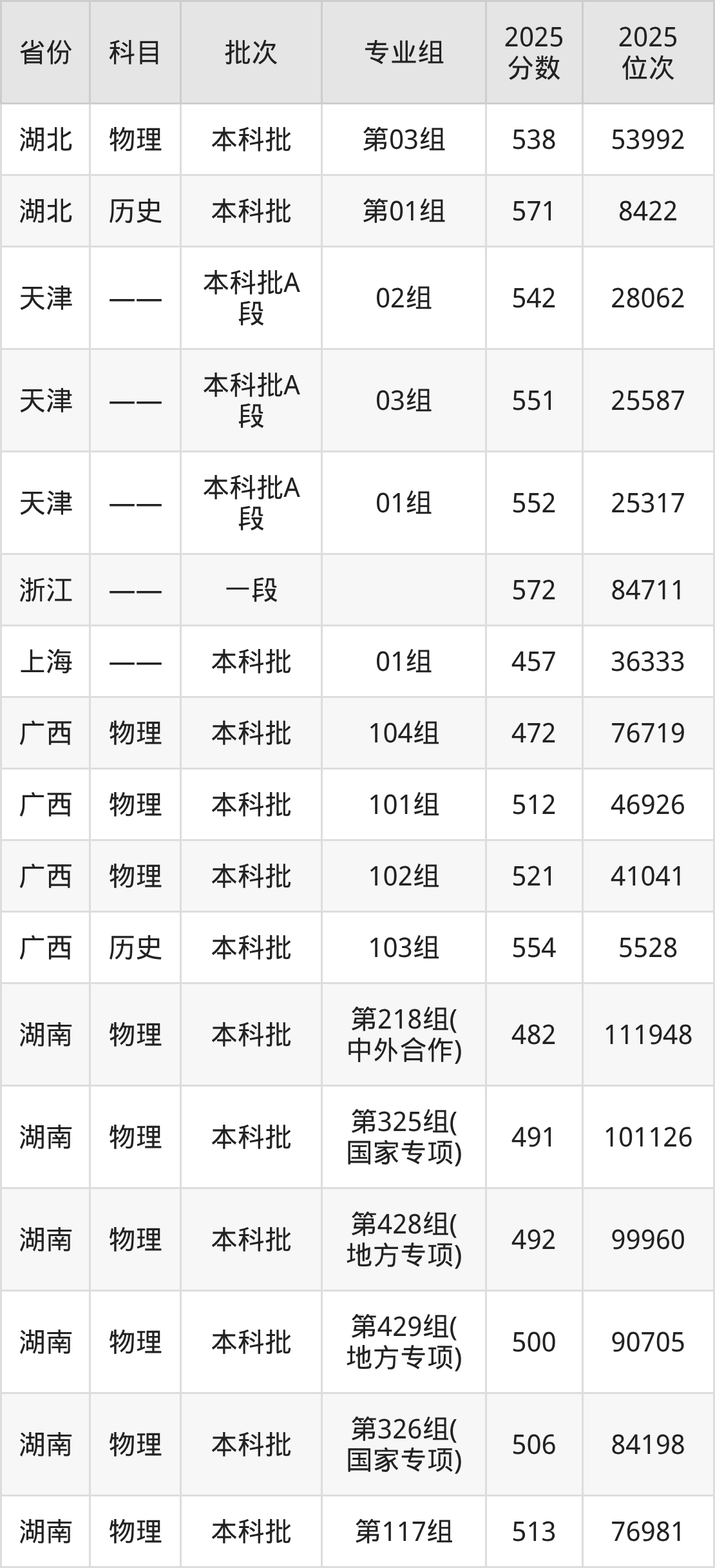 湖南工商大学第325组(国家专项):2025年投档录取最低分为491分,录取最低位次为101126名。