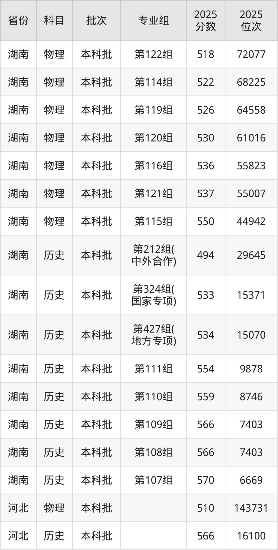 湖南工商大学第122组:2025年投档录取最低分为518分,录取最低位次为72077名。