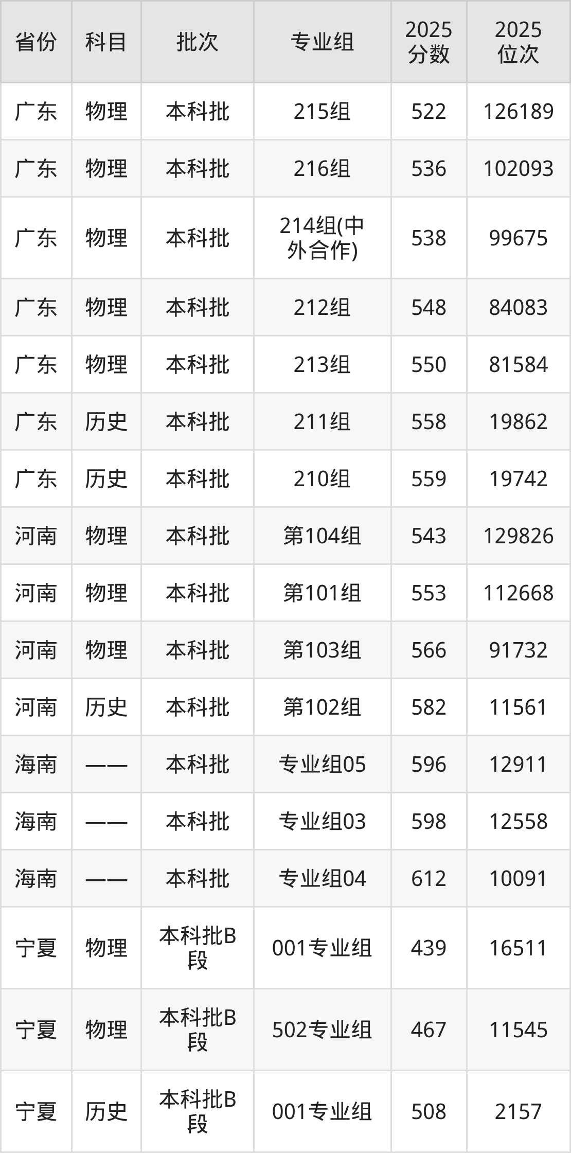 2025年湖南工商大学全国录取分数线是388分到612分,录取最低在吉林物理类(第004组)、录取最高在海南(专业组04)。各省各专业组最低分具有差异,详情如下: