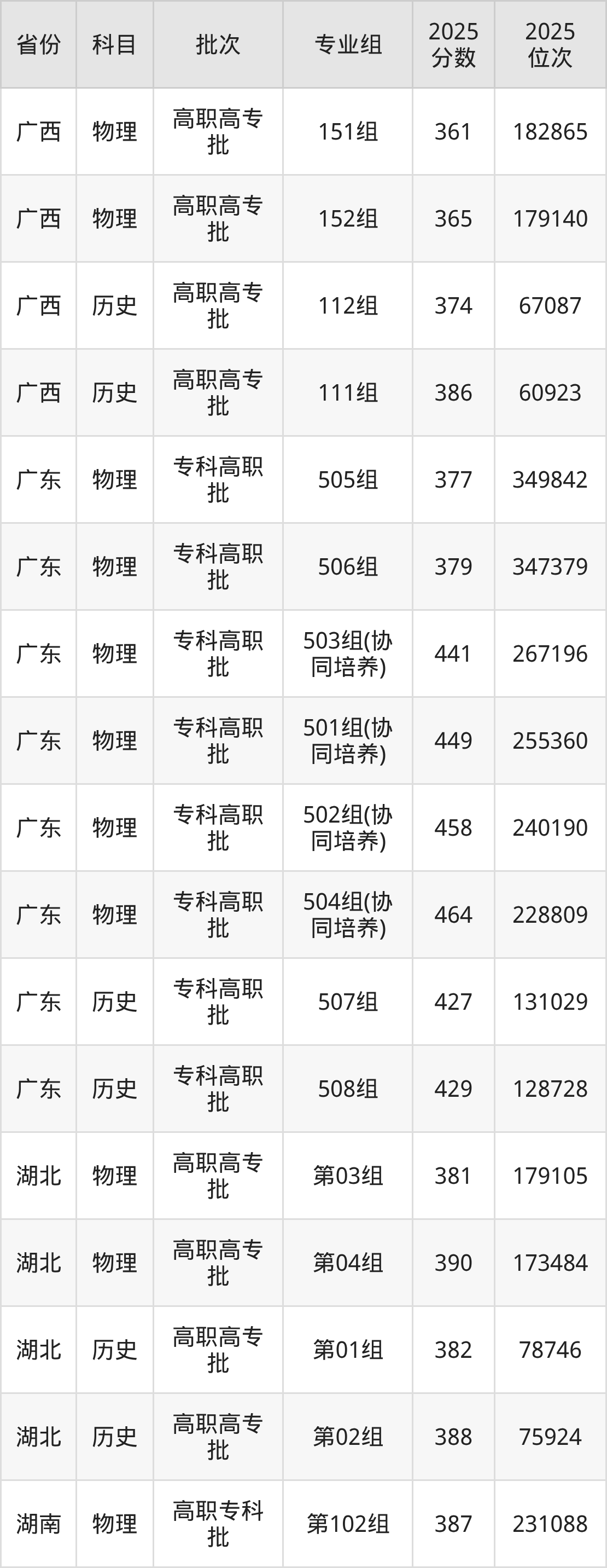 广东环境保护工程职业学院第001组:2025年投档录取最低分为340分,录取最低位次为36124名。