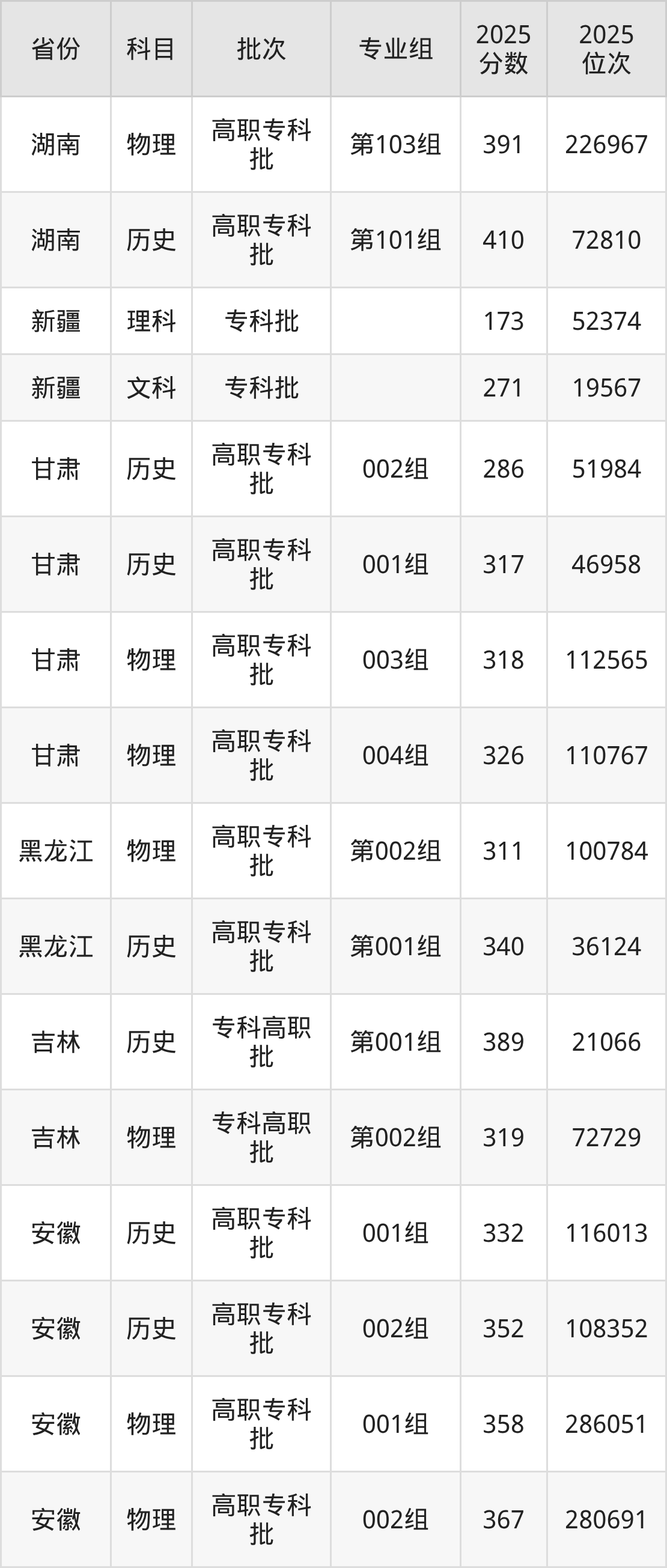 2025年投档录取最低分为173分,录取最低位次为52374名。